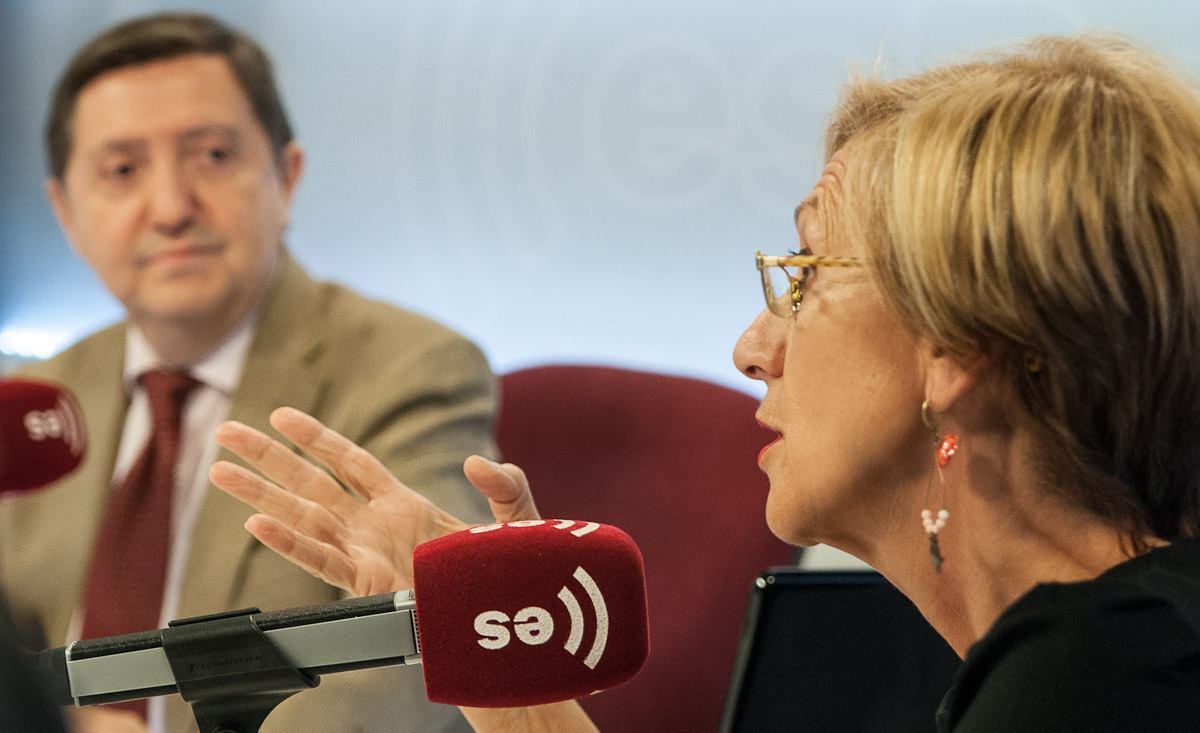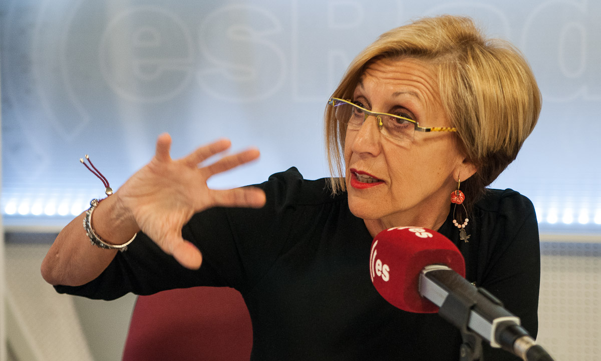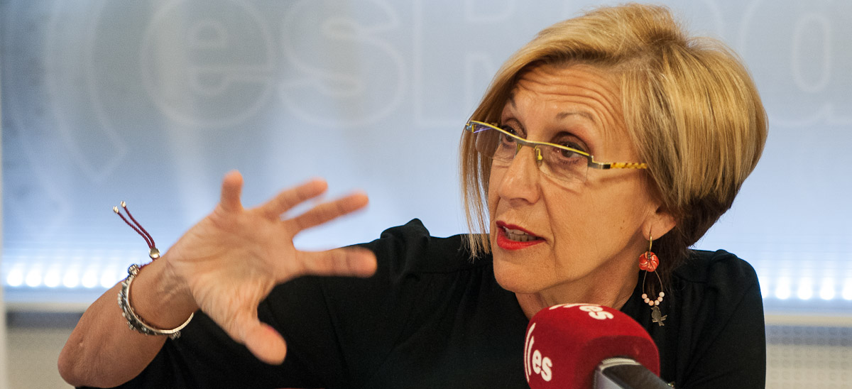 Rosa Díez, sonriente, unos segundos antes de empezar la entrevista
