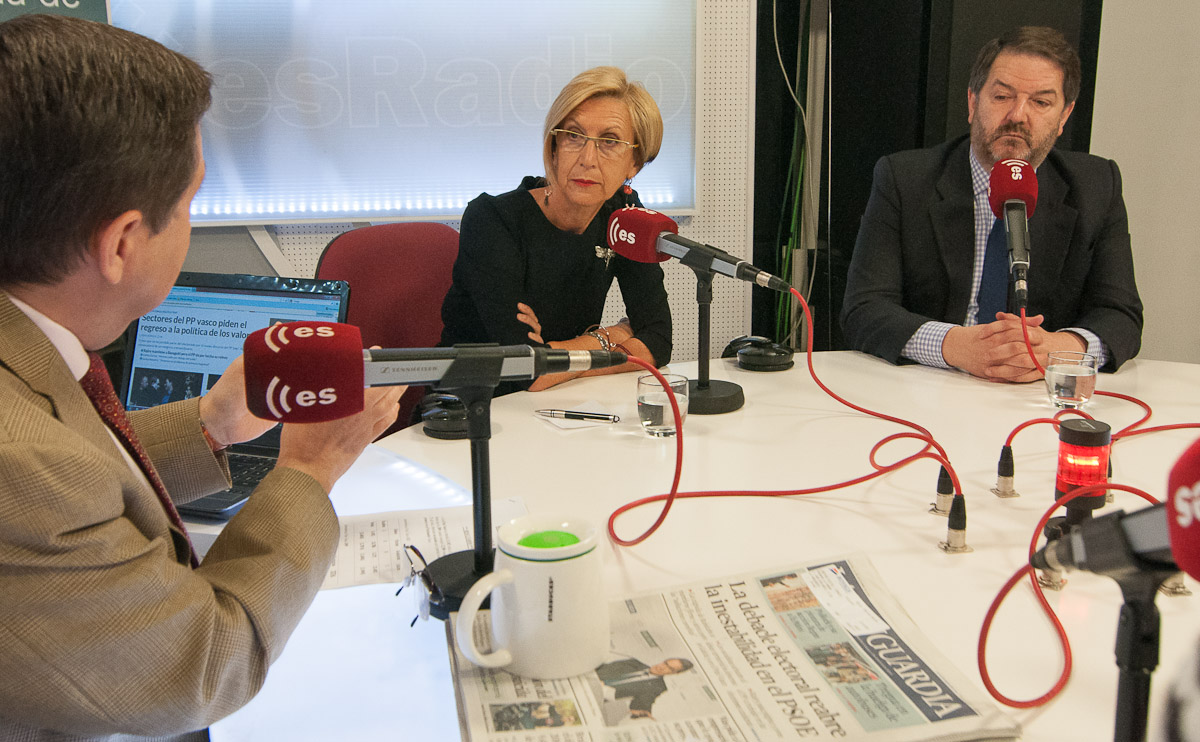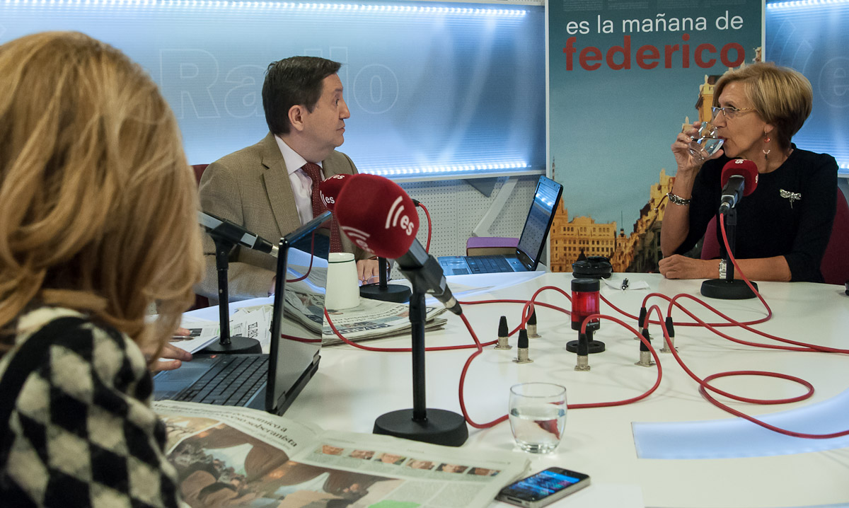 Un momento justo antes de la entrevista con Rosa Díez, Federico Jiménez Losantos y Carmen Tomás en primer plano