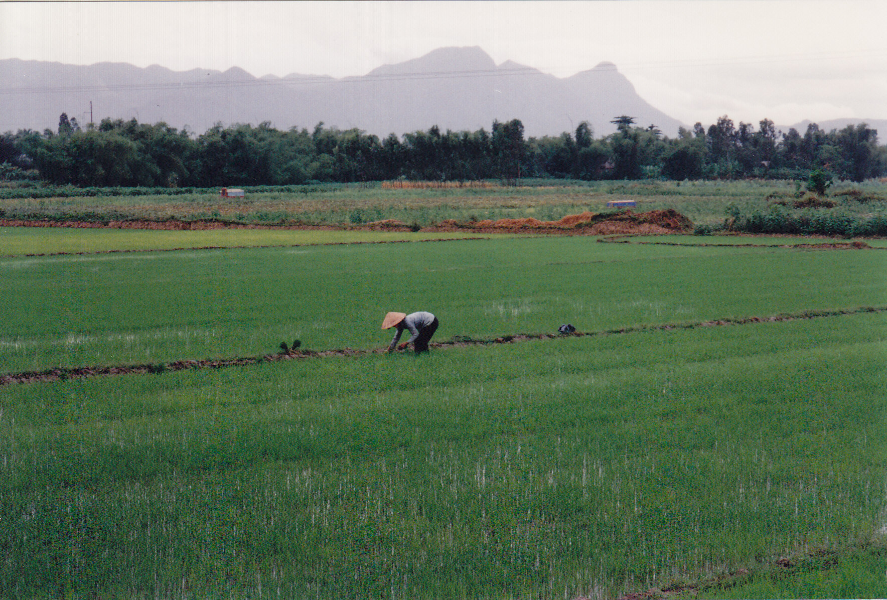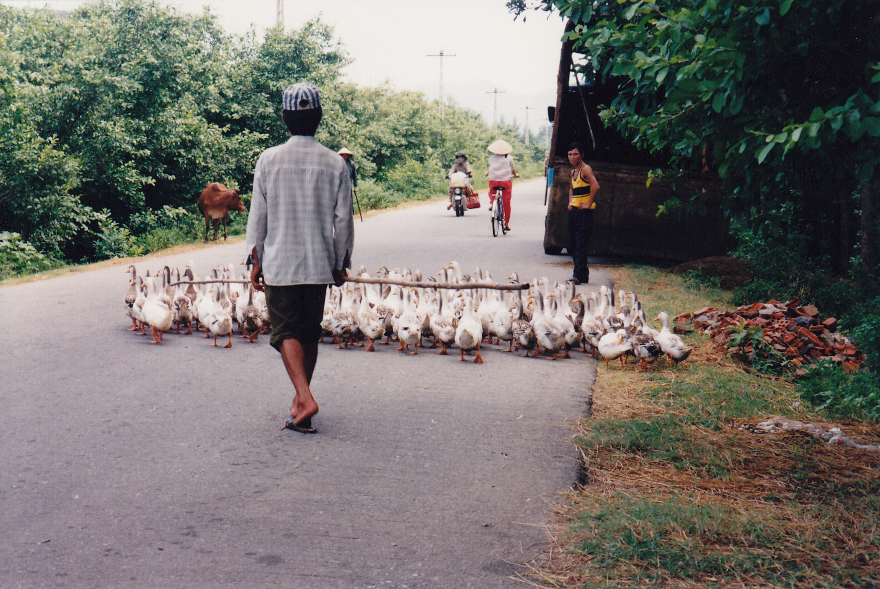 Fotografía tomada en Vietnam por Mercedes Rosúa en 1994. Un vietnamita con unas ocas en el pueblo de Hoi An.