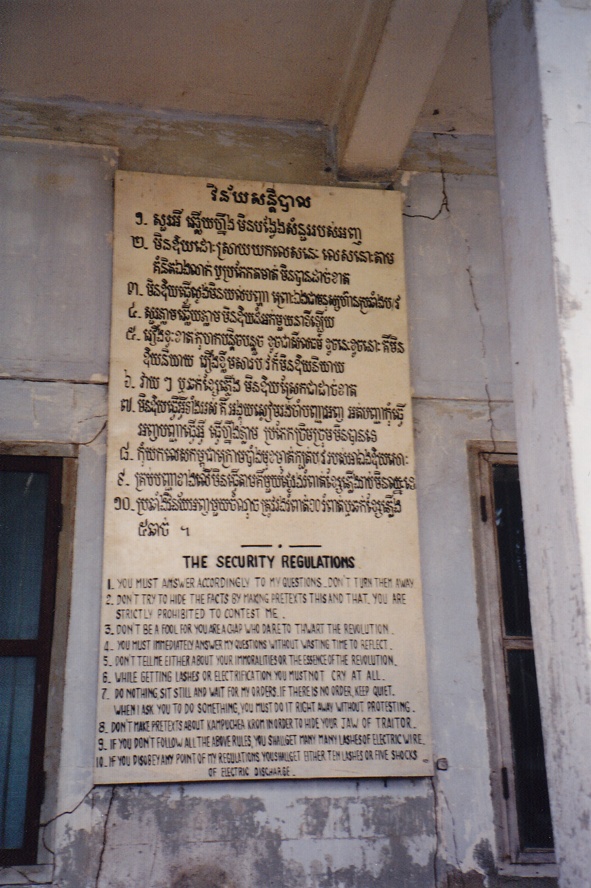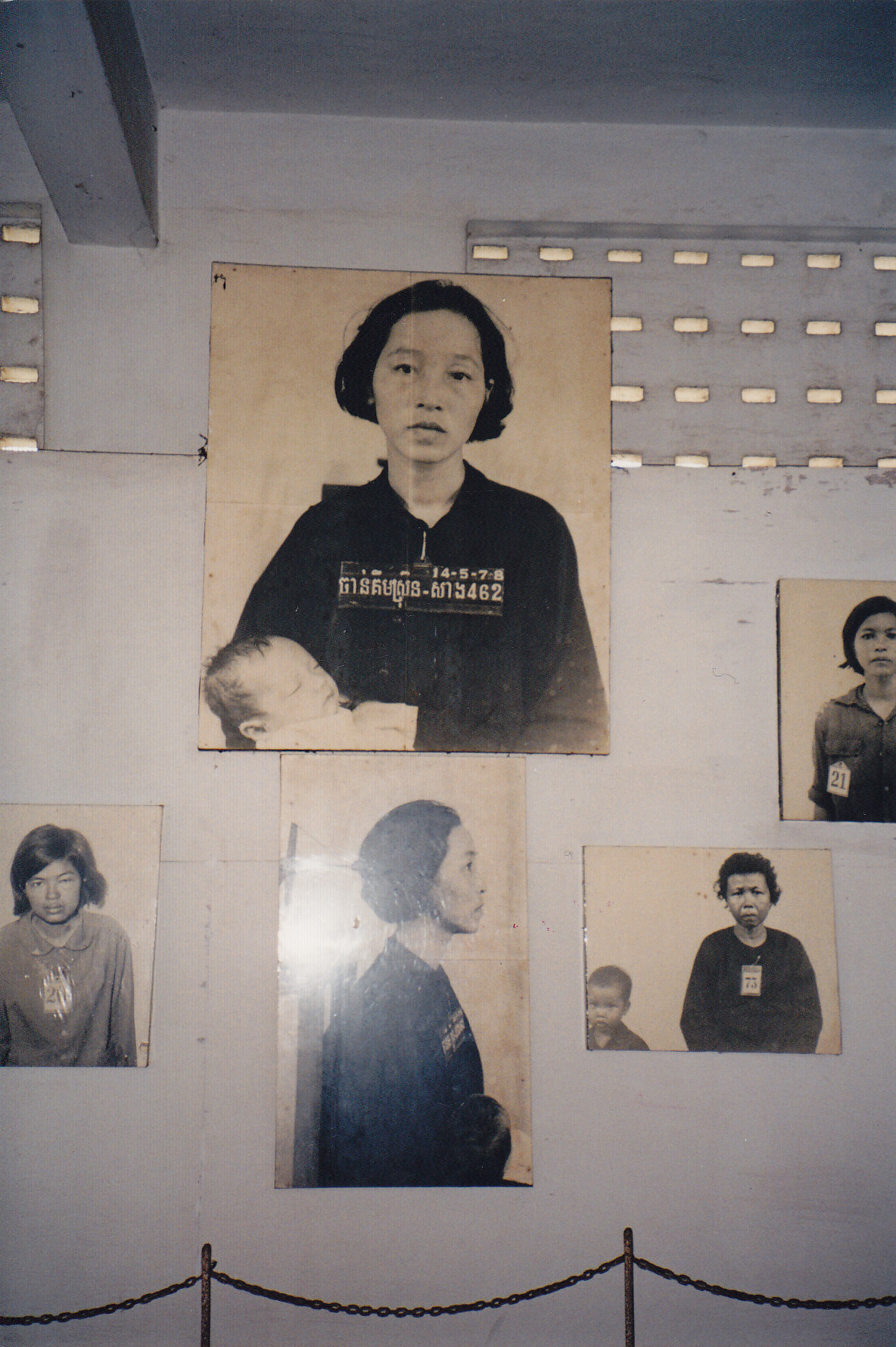 Fotografía tomada por Mercedes Rosúa en un viaje a Camboya. La foto muestra uno de los expositores de la prisión conocida como S-21, situada en Phnom Penh, y llamada "Tuol Sleng". En ella -antigua prisión de exterminio de los "Jemeres Rojos" durante el final de los 70- hoy día es un museo del genocidio camboyano. La fotografía es de 1994