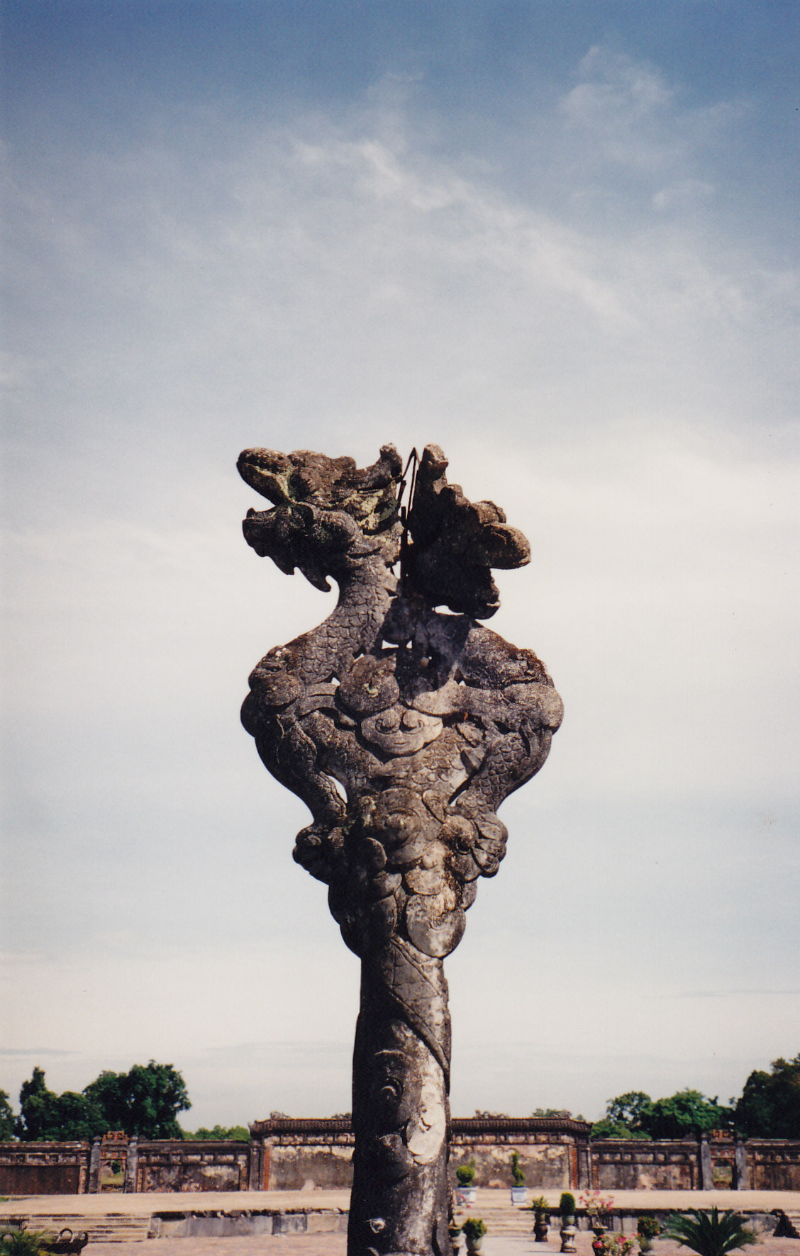 Fotografía tomada en Vietnam por Mercedes Rosúa en 1994. Dragón tallado en un poste de piedra en las ruinas del palacio imperial de Hué