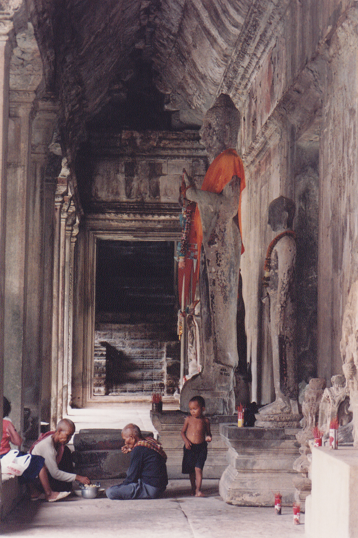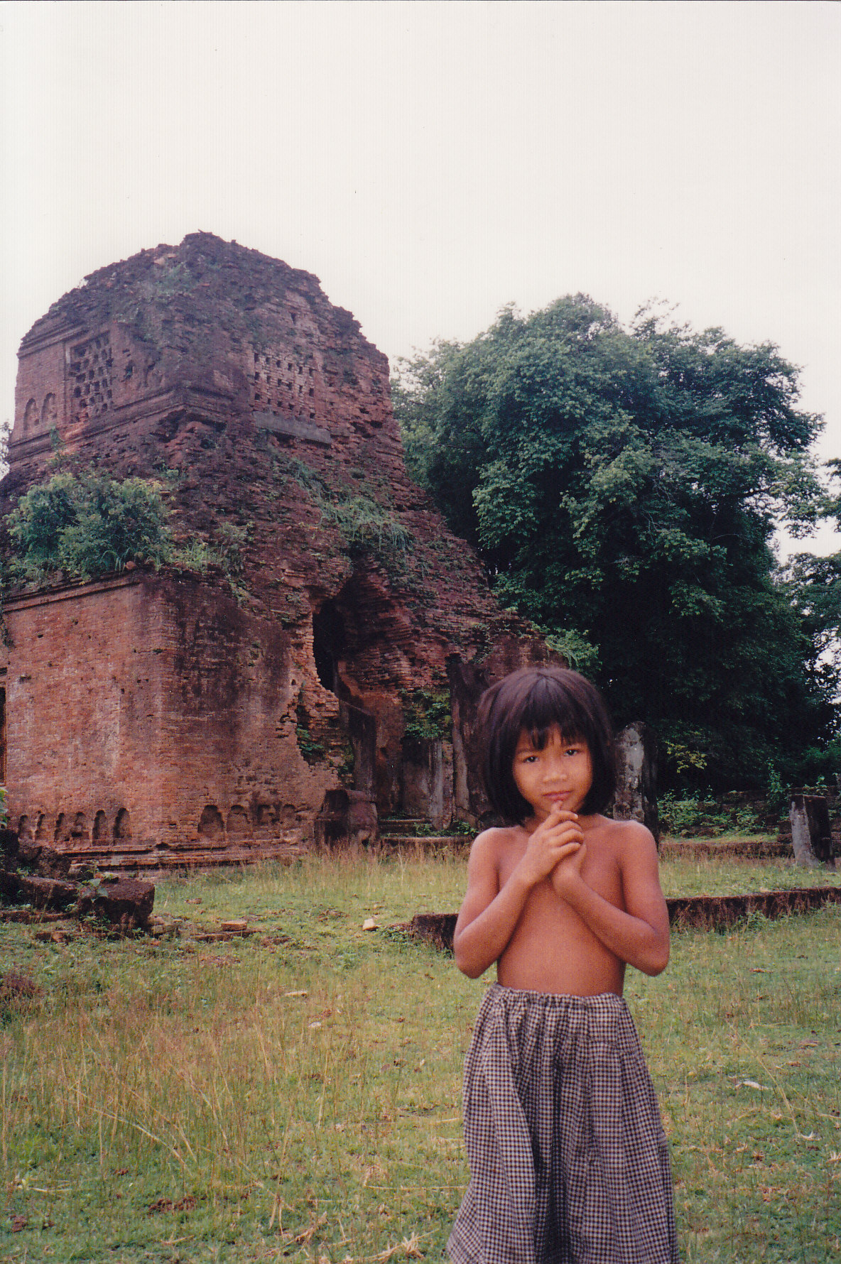 Niña junto a las ruinas de Angkor. Fotografía tomada por Mercedes Rosúa en su viaje a Camboya en 1994