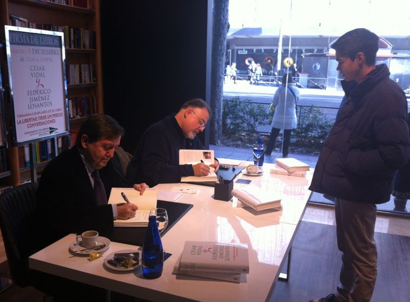 Federico Jiménez Losantos y César Vidal han firmado ejemplares de su nuevo libro La libertad tiene un precio. Conversaciones, en El Corte Inglés de Princesa este sábado 8 de diciembre de 12 a 14 horas. El presidente y el consejero del grupo Libertad Digital, han cosechado un rotundo éxito de asistencia.