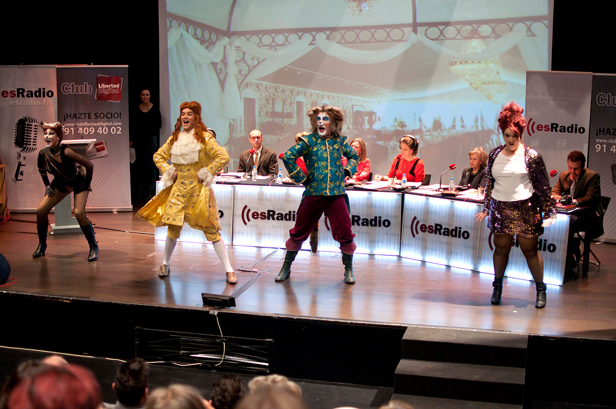 Yésica Sánchez redactora y productora del programa da paso a la actuación de parte de los integrantes del musical El gato con botas.