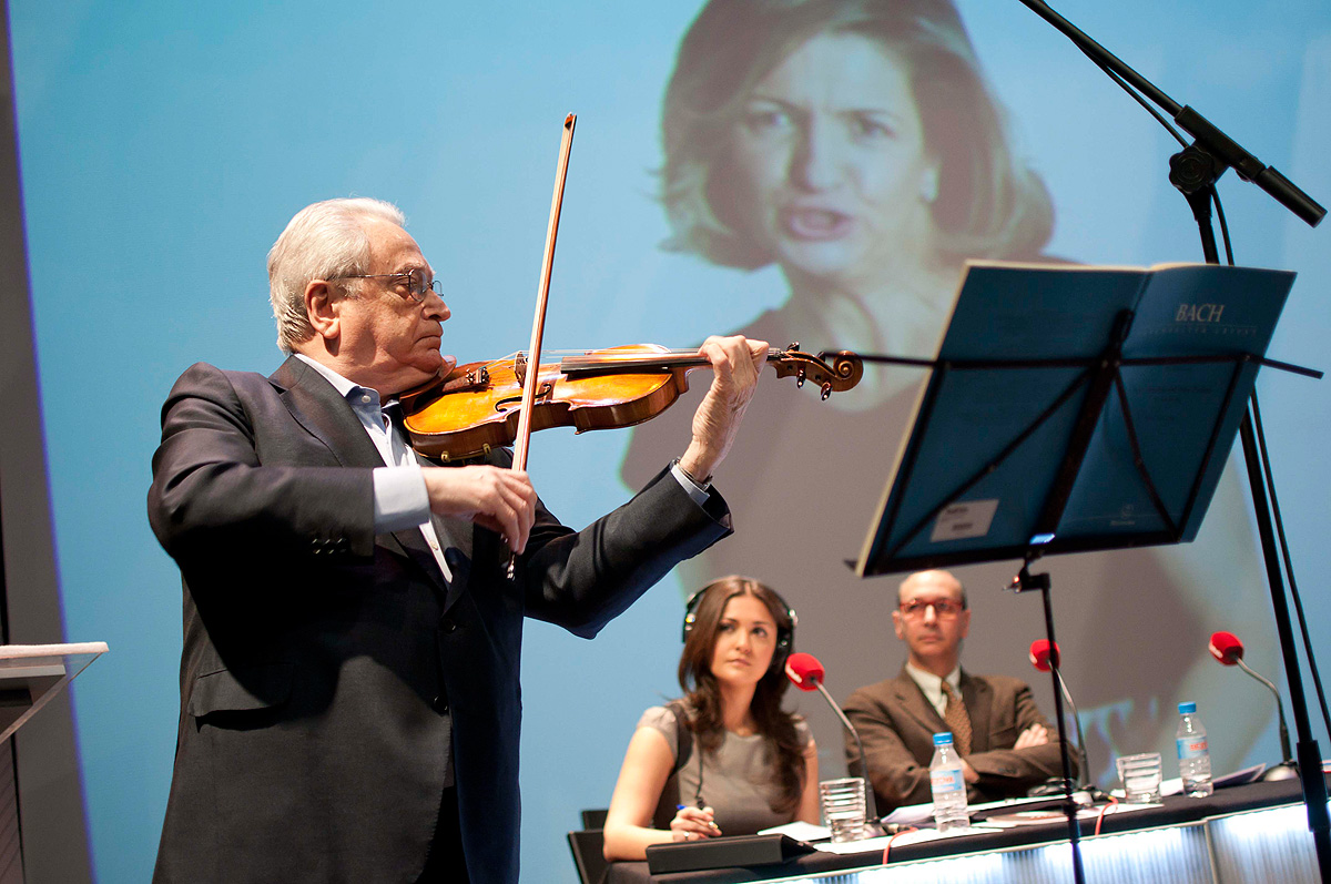 Agustín León Ara, reconocido violinista, durante su actuación.