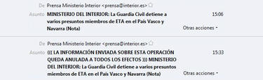 La cuenta de Twitter de Interior anunció una operación contra ETA antes de producirse. Los etarras destruyeron pruebas.