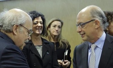 ![]() El consejero catalán y Montoro se saludan antes del encuentro | EFE