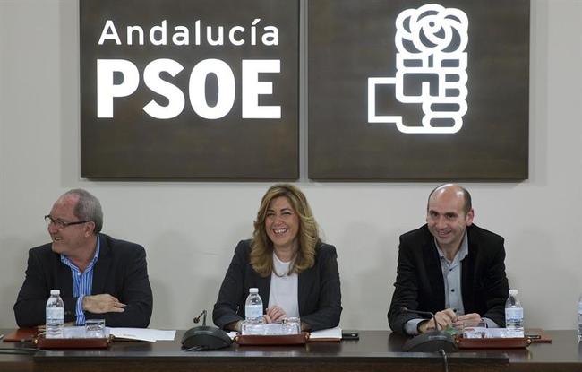 Herrero comenta con Fernando Lázaro, Cristina de la Hoz y J. A. Vara los problemas que tiene Susana Díaz para lograr su investidura.