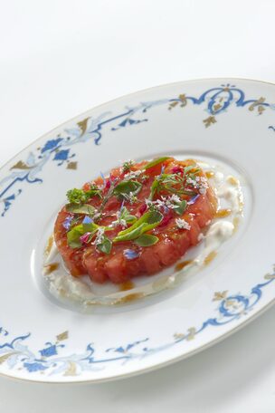 Tartar de tomate | Cordon Press Tartar de tomate y queso con pesto de hierbabuena Clara Villalón enseña a preparar esta receta sencilla y sabrosa para los últimos días del verano.