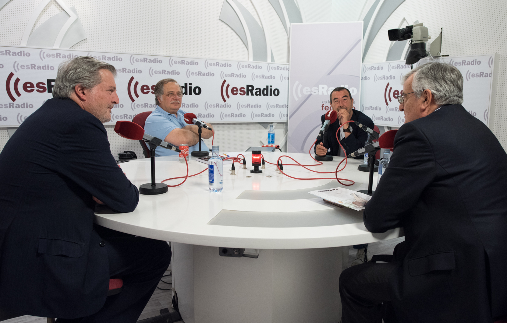 Luis Herrero, Eduardo Torres Dulce y José Luis Garci hablan con el ministro de Cultura, Íñigo Méndez de Vigo, de cine y más cosas en el programa Cowboys de medianoche.