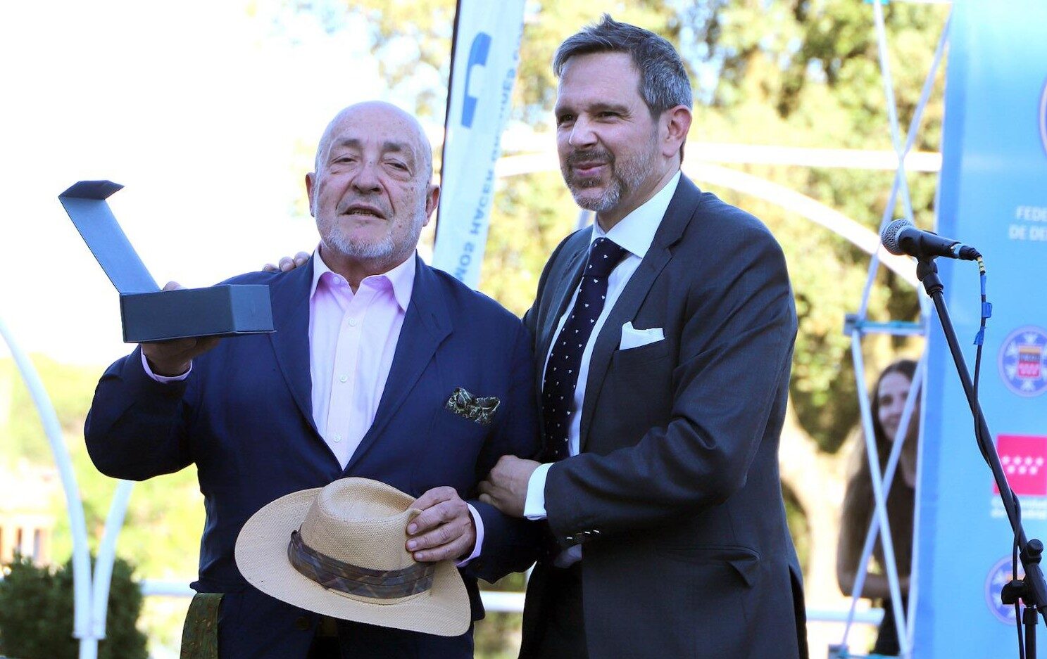Lucinio Serrano recogía el premio de las manos de Antonio Fernández Coppel, presidente de la Federación Madrileña de Deportes de Invierno, y de Alberto Tomé, viceconsejero de Deportes de la CAM, en un acto celebrado en el anfiteatro del Club de las Encinas de Boadilla del Monte (Madrid).