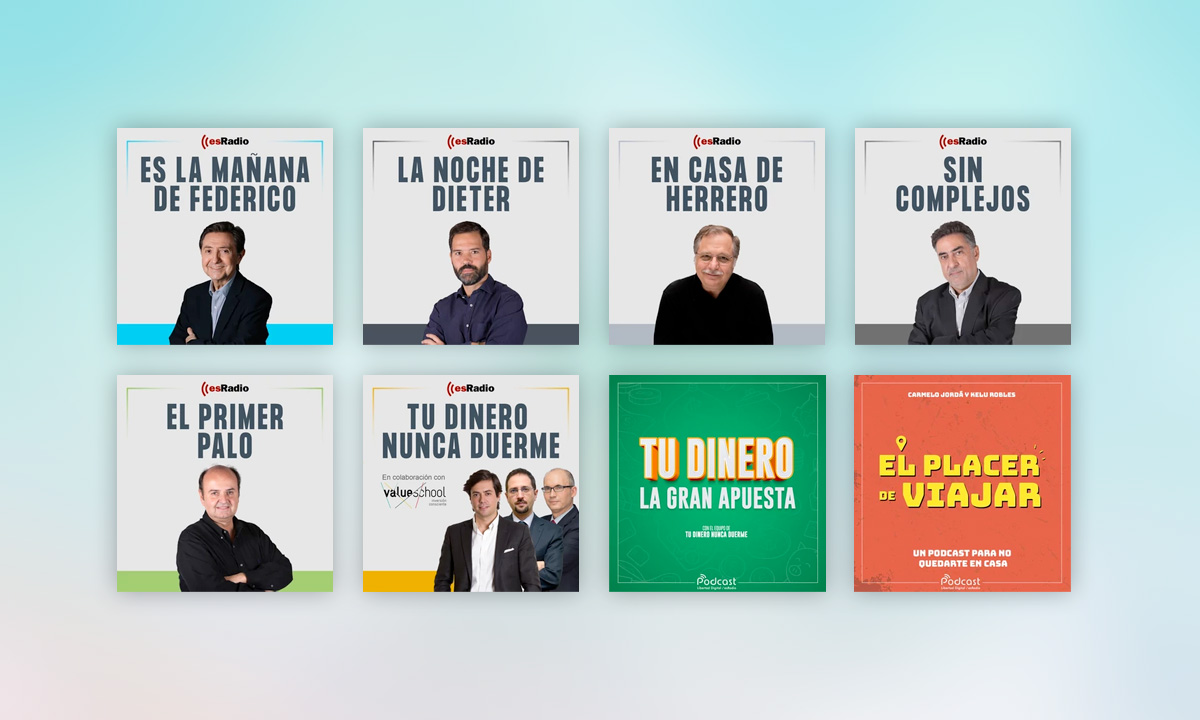 Los audios de esRadio suman mensualmente más de 6.000.000 descargas y los principales programas de la emisora se encuentran entre los primeros puestos de todas plataformas de podcast. Además, en lo que se refiere a podcast nativos, la media de descargas mensuales ha crecido con fuerza, situándolos también entre los principales puestos de sus respectivas categorías en las mayores plataformas.
