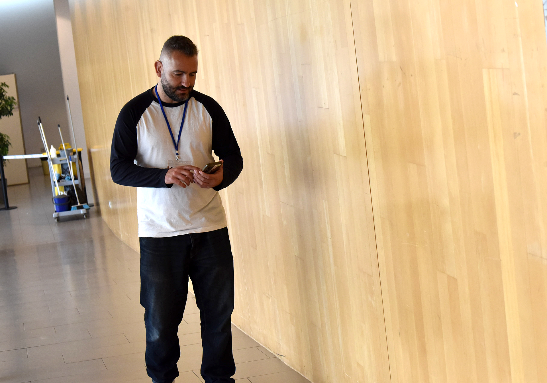 Faustino Aliseda, responsable del material técnico, concentrado en su labor.