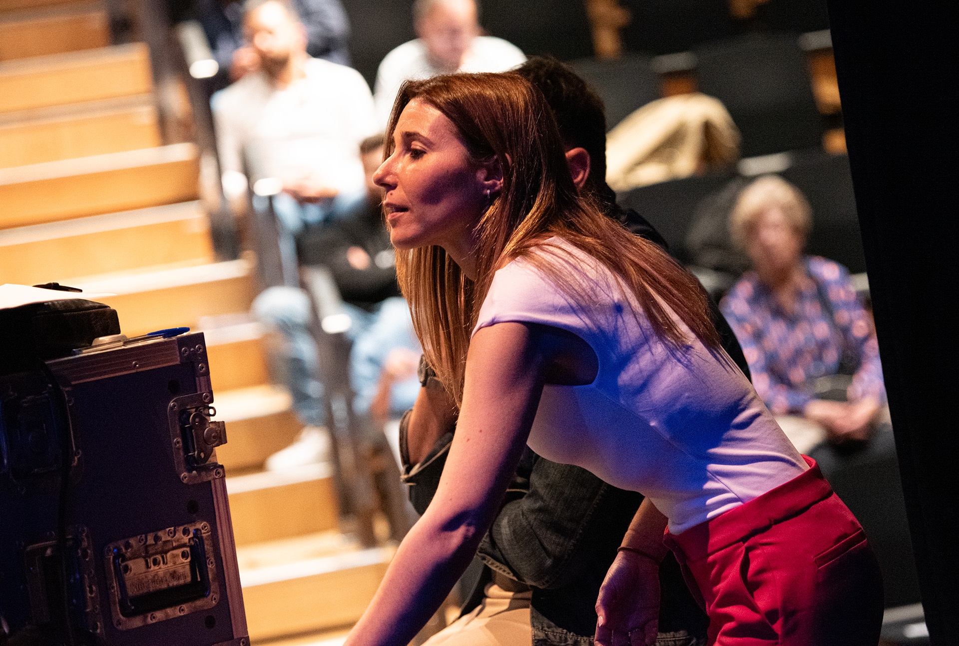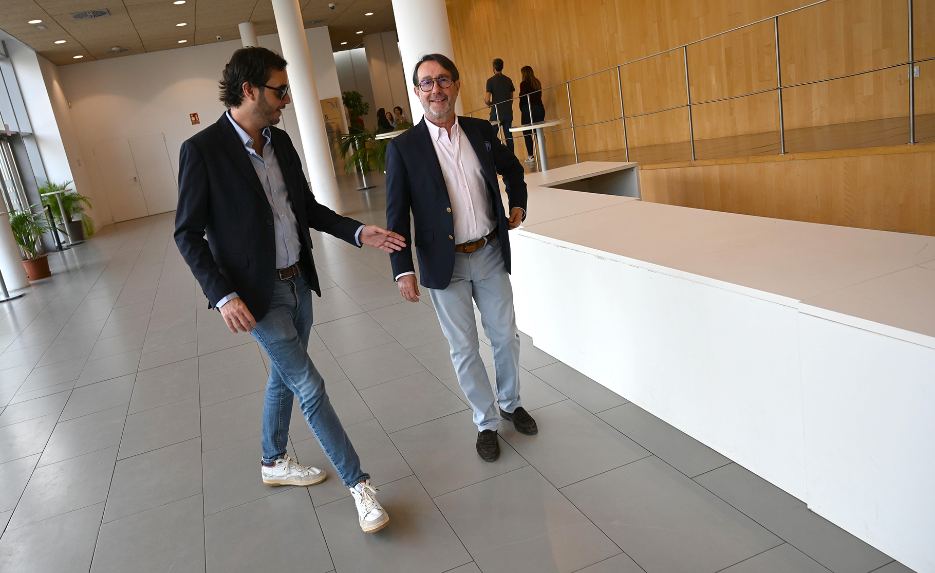 Daniel Carande y Carlos Pérez Gimeno, entre bambalinas del auditorio Edgar Neville de Málaga.