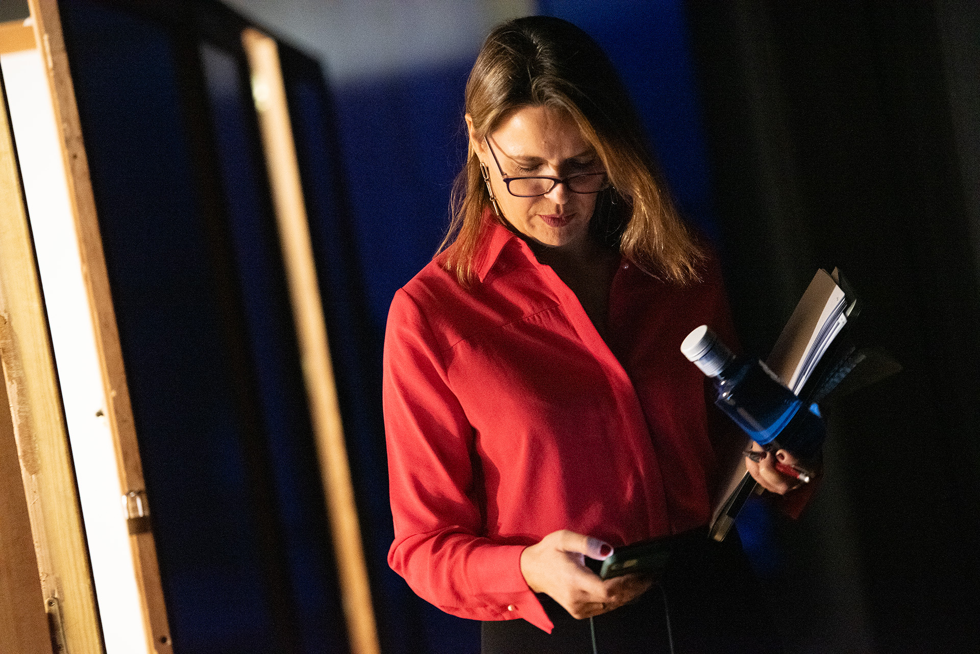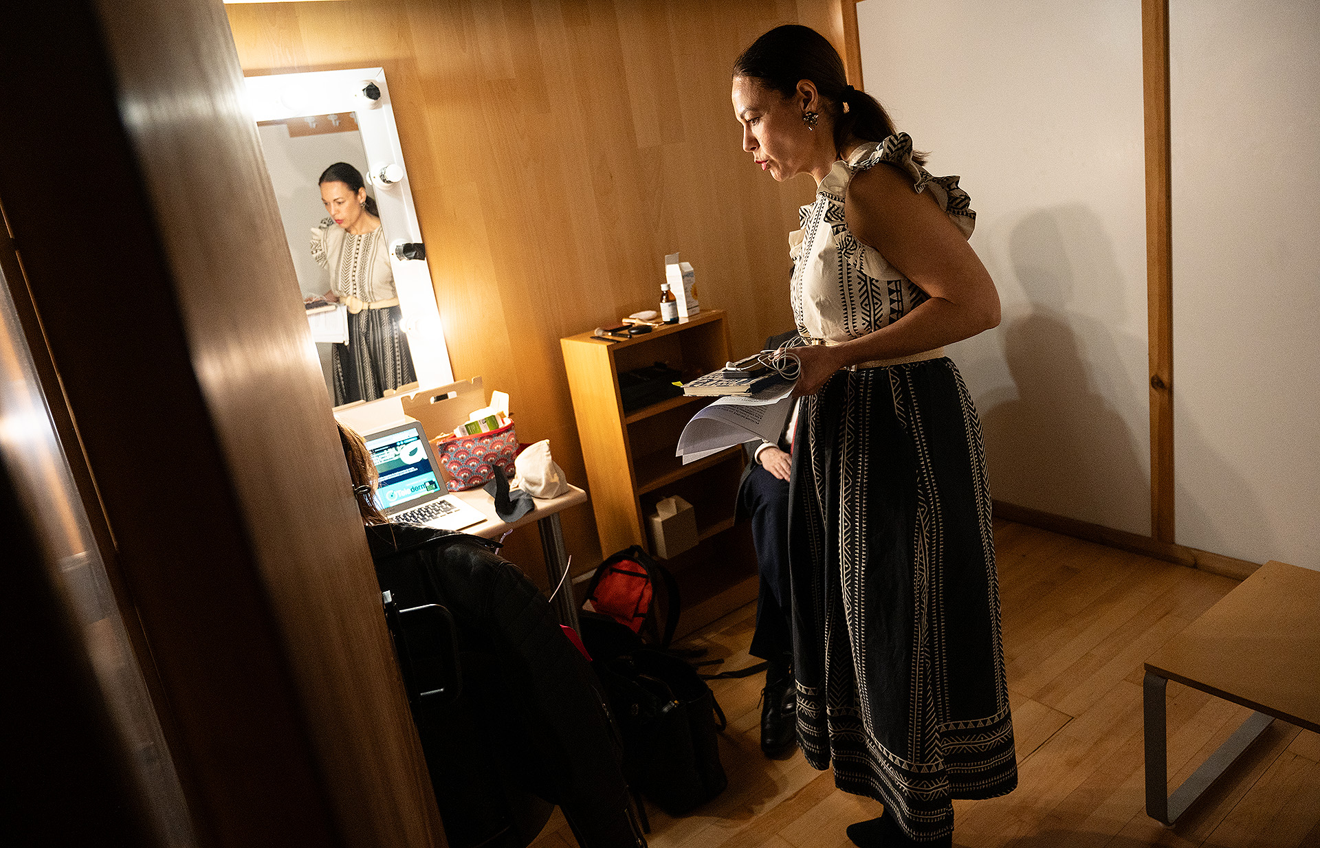 Rosana Laviada, Isabel González y Federico, en los camerinos del auditorio.