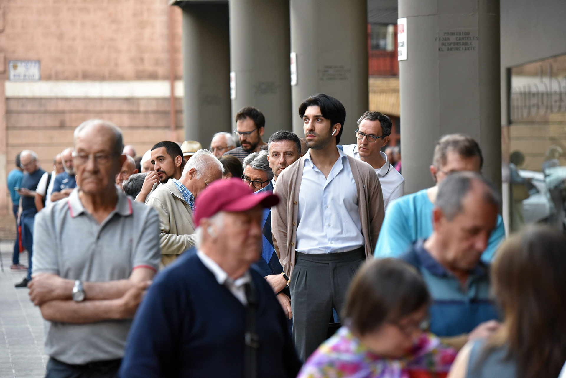 Cola de oyentes esperando a entrar al cine Palafox de Zaragoza