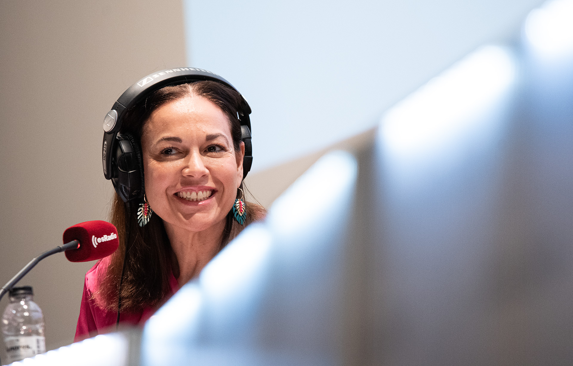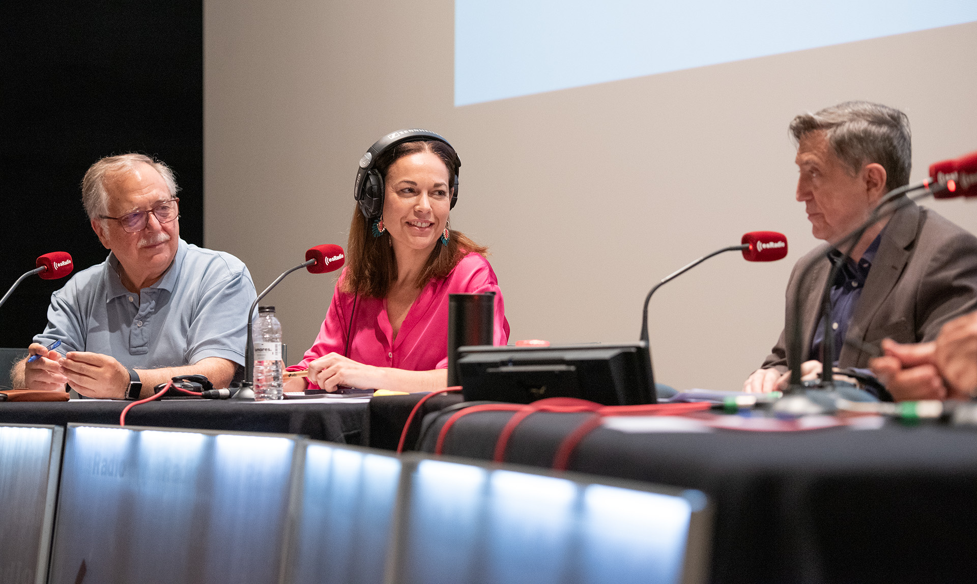Isabel González, guía la sección de Crónica Rosa, durante el programa especial desde el cine Palafox de Zaragoza.