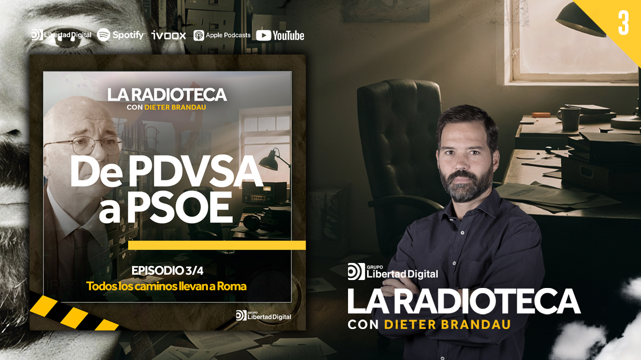 Dieter Brandau y su equipo de La Radioteca viajan hasta Roma en el tercer capítulo de la serie "De PDVSA a PSOE" para entrevistar al expresidente de PVSA, quien llegó a acusar a José Luis Rodríguez Zapatero de haber cobrado dinero del régimen chavista.