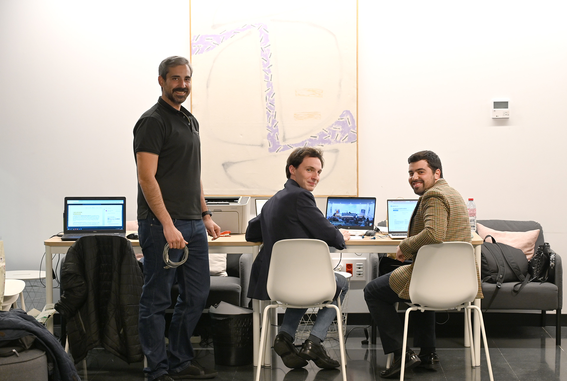 Carlos Cuesta, la presidenta de la Comunidad de Madrid Isabel Díaz Ayuso y Juan Pablo Polvorinos en el programa especial de ‘La noche de Cuesta’, en directo desde el HUB232 en Las Rozas.