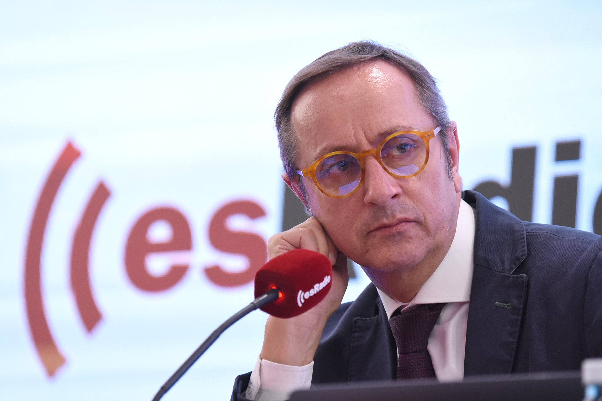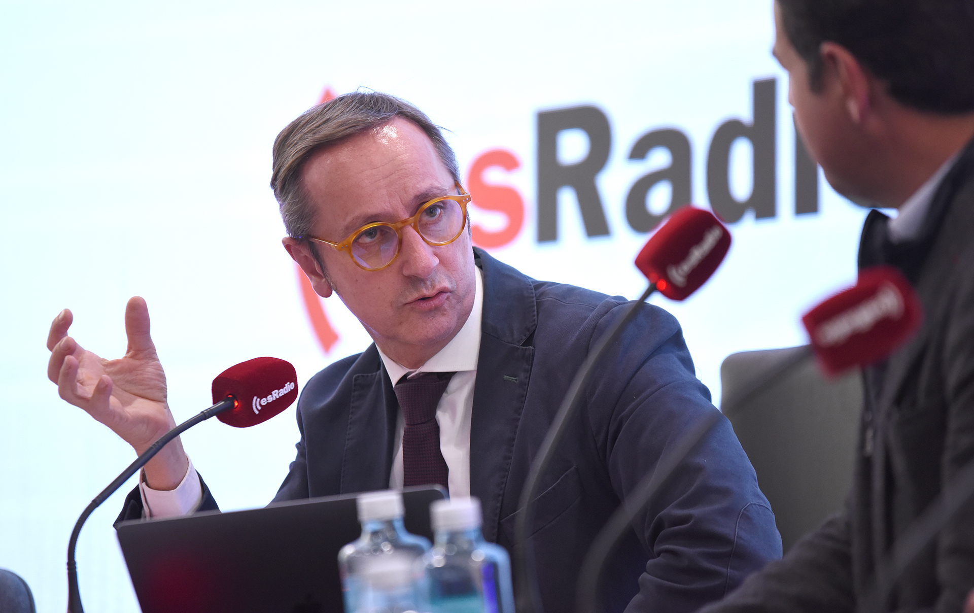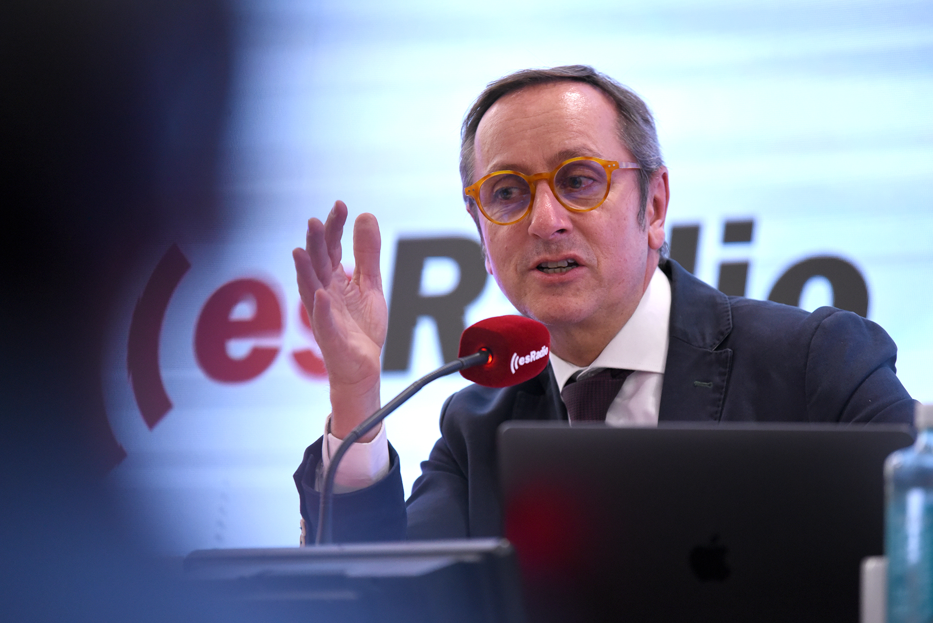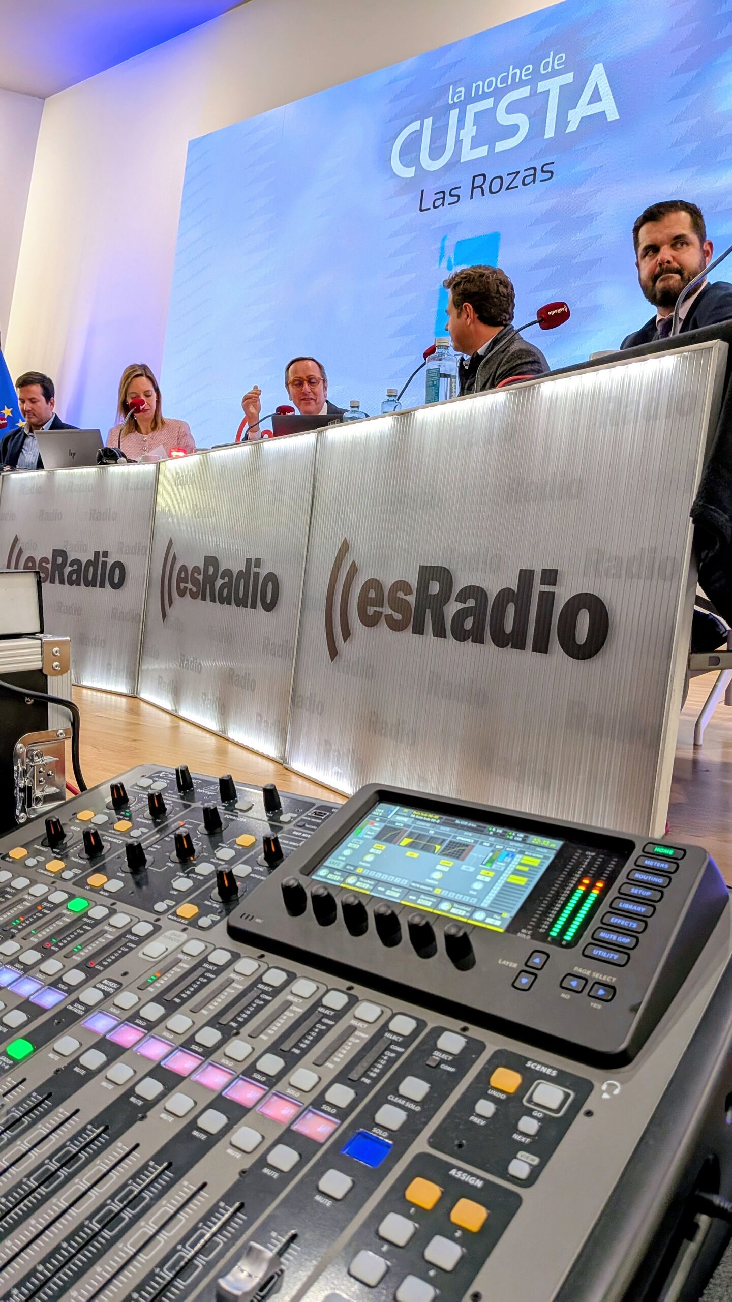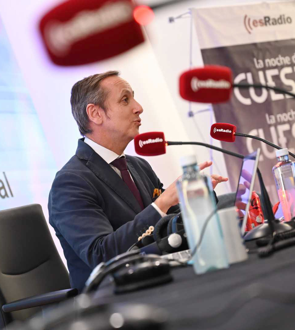 El director de los informativos de esRadio, Juan Pablo Polvorinos, en el programa especial de ‘La noche de Cuesta’, en directo desde Las Rozas.