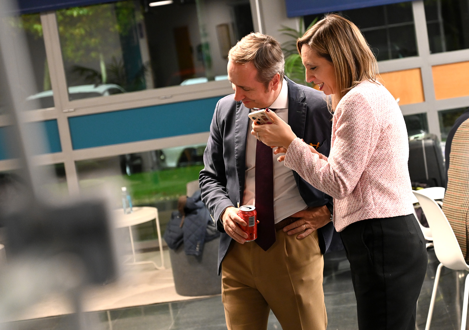 Carlos Cuesta y Sandra León, antes de comenzar el programa especial de 'La Noche de Cuesta' desde Las Rozas.