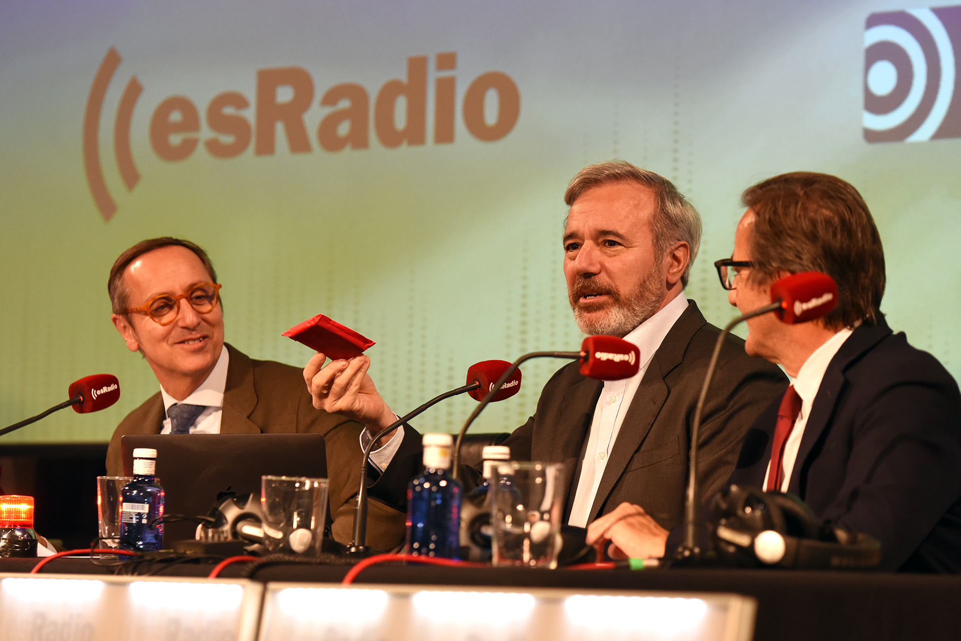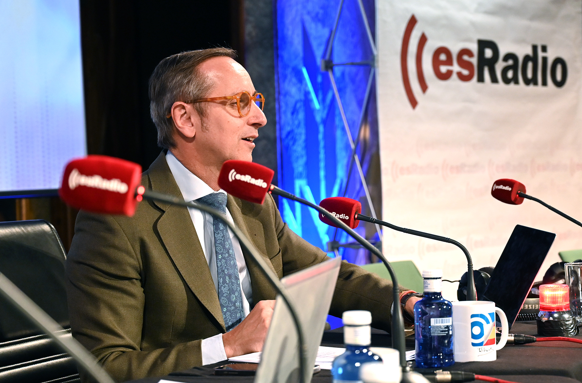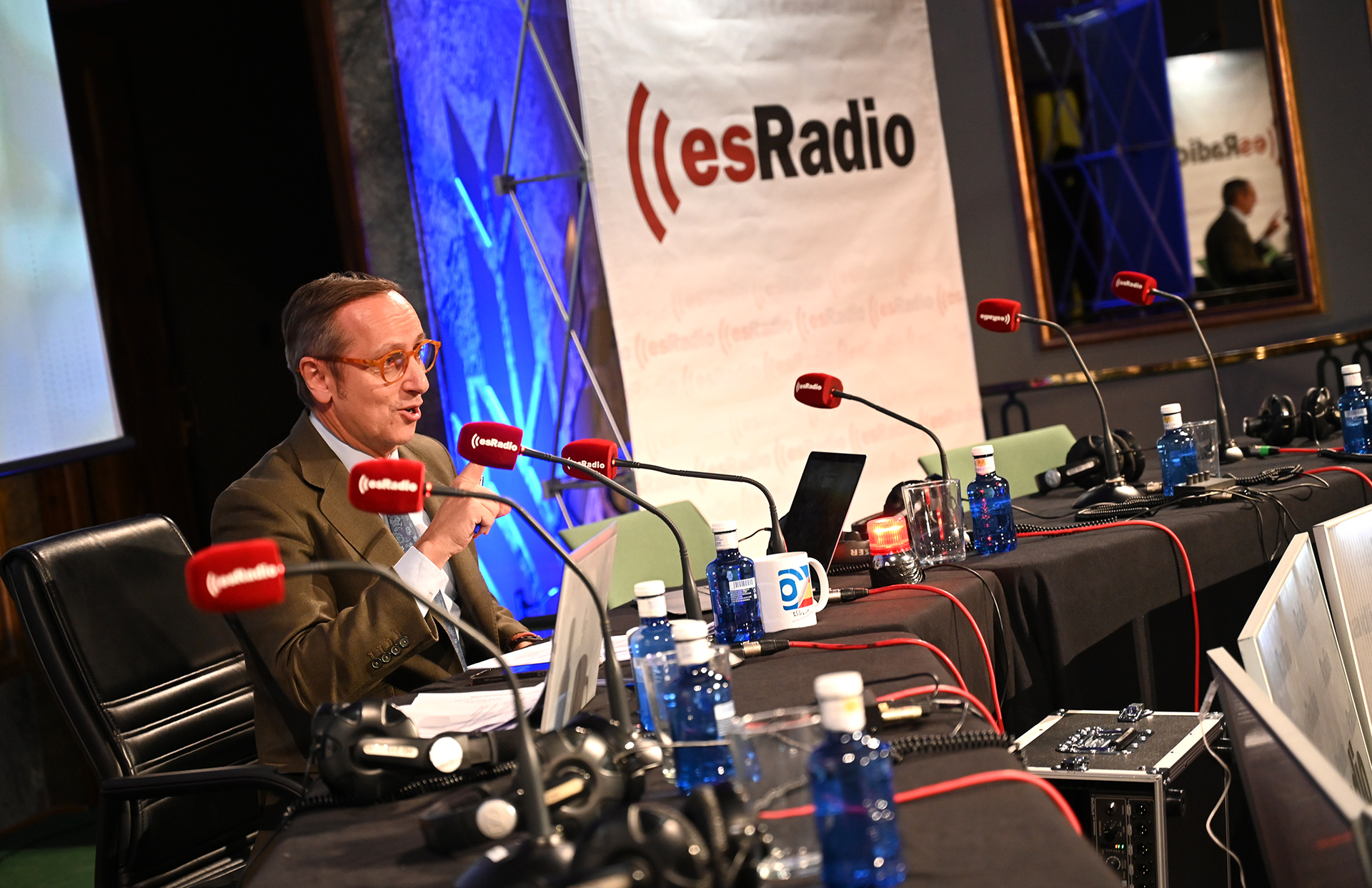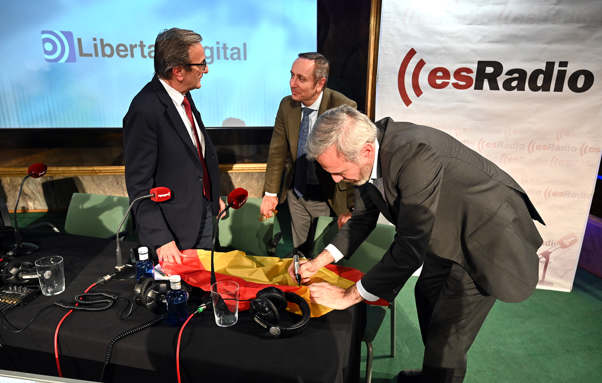 Carlos Cuesta ha comenzado su programa especial con el ya tradicional saludo al público con la bandera de España.