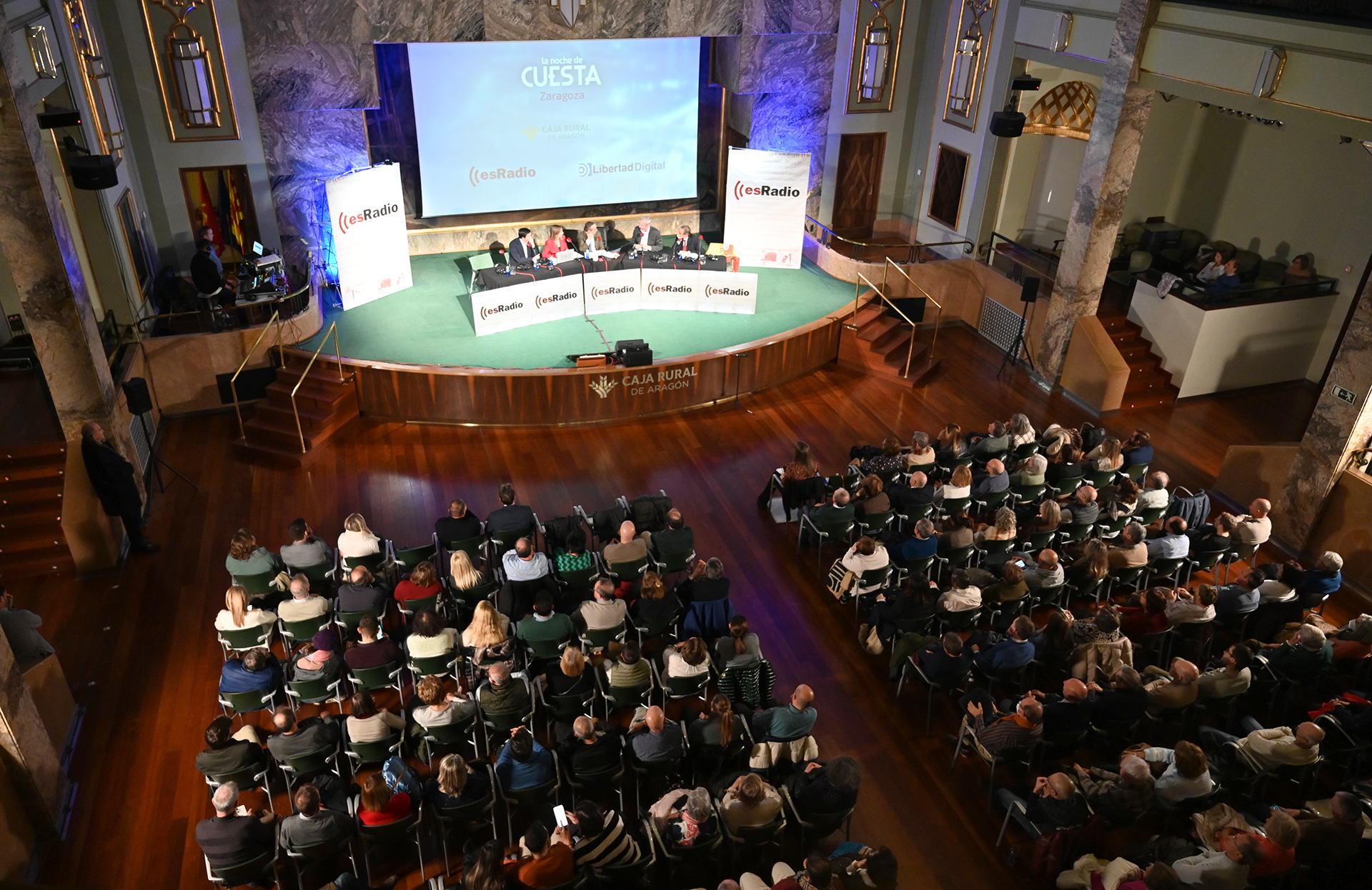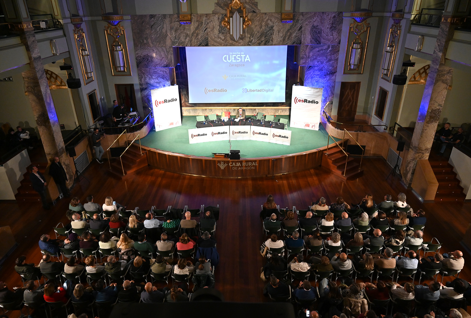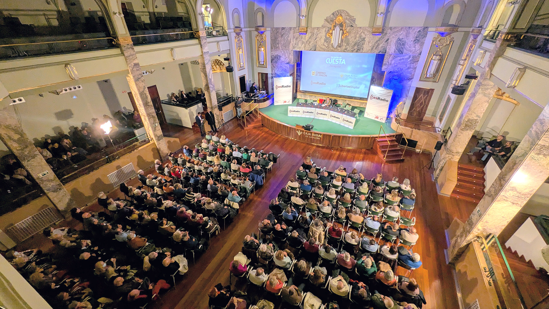 Este miércoles 26 de noviembre, Carlos Cuesta y todo su equipo han realizado una edición muy especial de su programa La Noche de Cuesta desde Zaragoza, en el edificio de Caja Rural, en su sala Pignatelli, la más emblemática.
