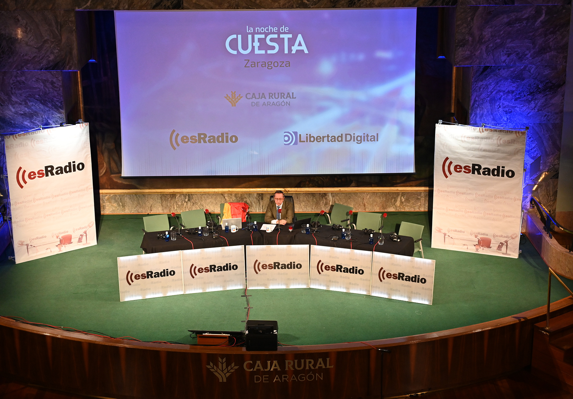 Este miércoles 26 de noviembre, Carlos Cuesta y todo su equipo han realizao una edición muy especial de su programa La Noche de Cuesta desde Zaragoza, en el edificio de Caja Rural, en su sala Pignatelli, la más emblemática.