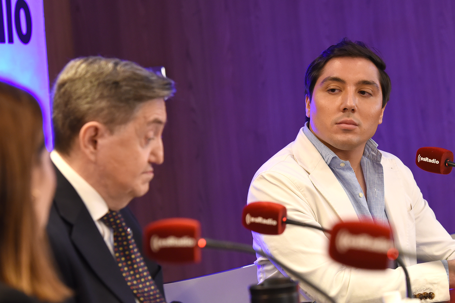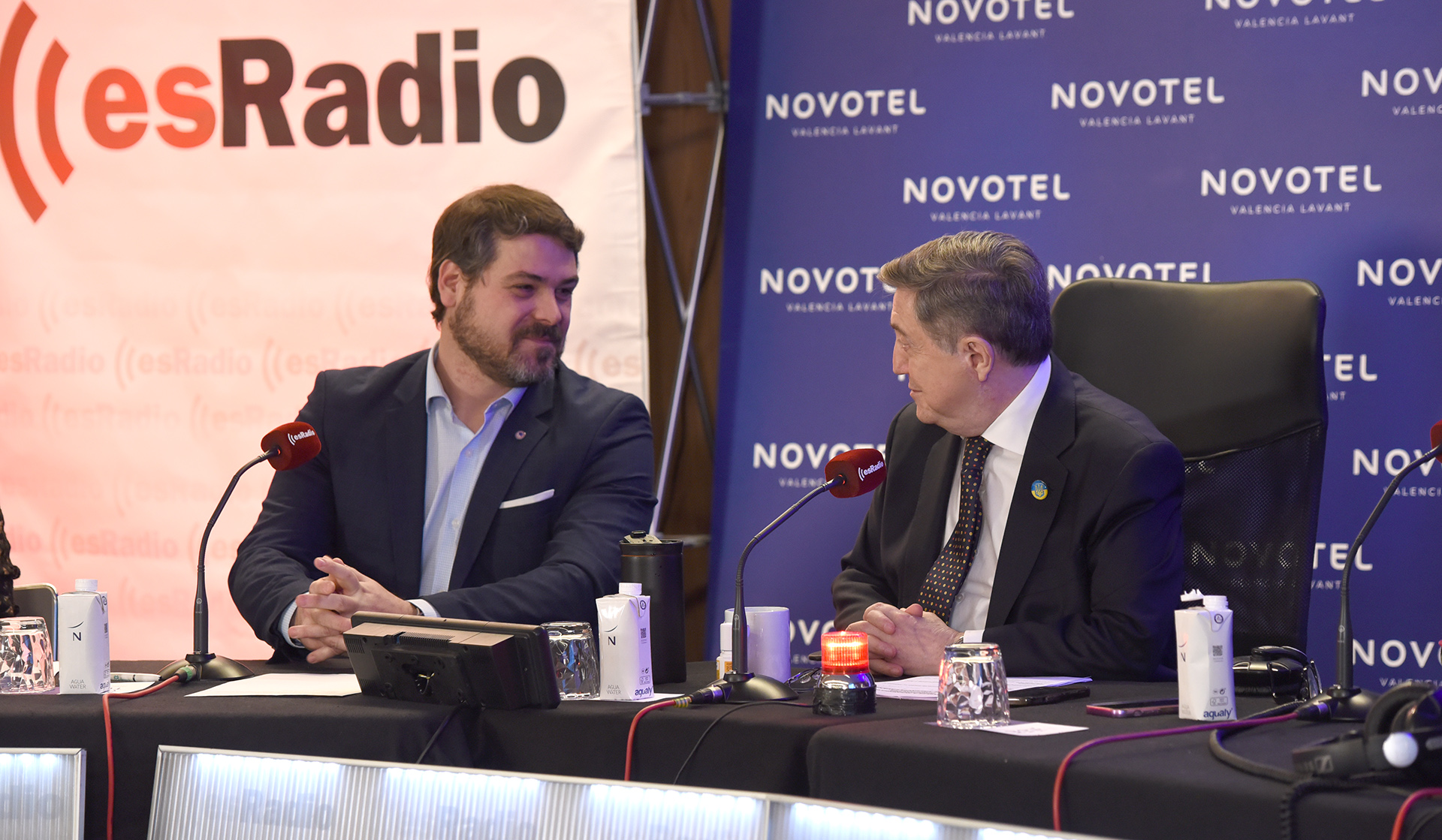 Juanfran Pérez Llorca junto a Federico Jiménez Losantos durante la entrevista realizada en el programa especial de esRadio realizado desde el Hotel Novotel Lavant en Valencia.
