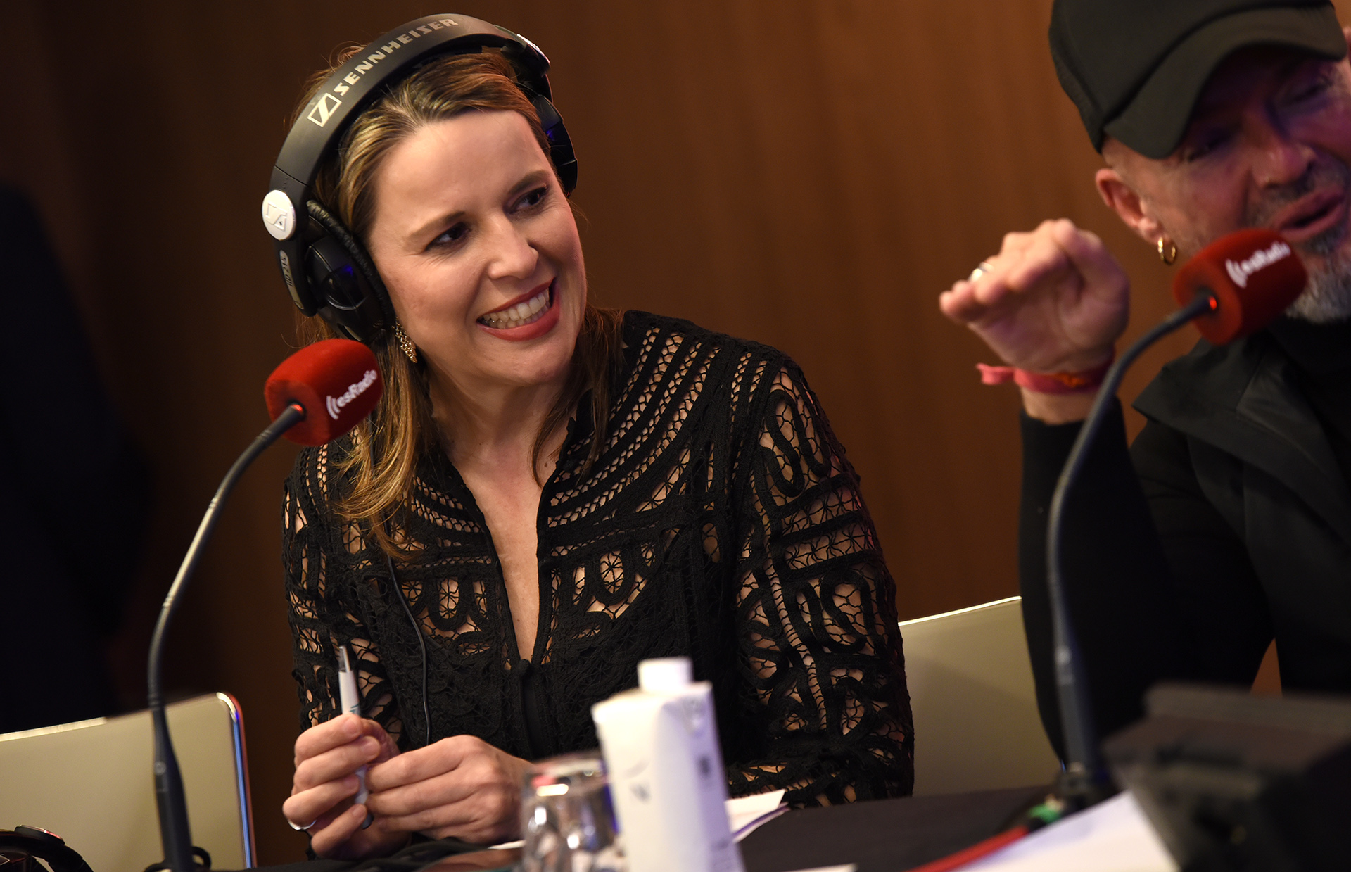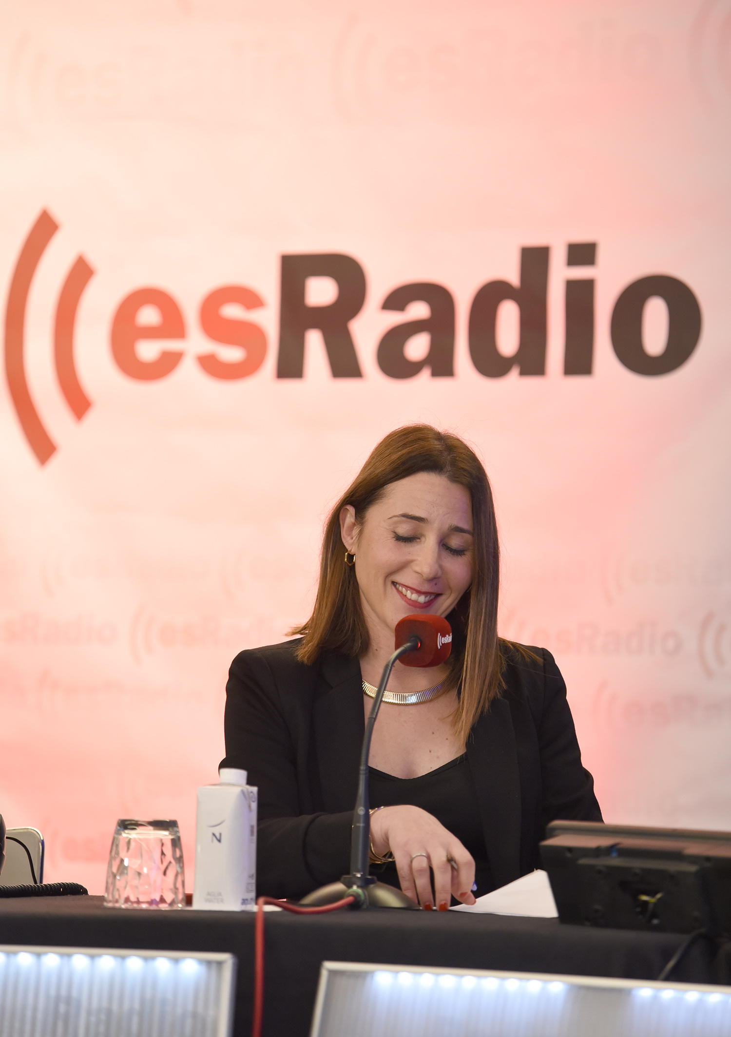 Rosana Laviada, subdirectora del programa Es la Mañana, escuchando con atención la intervención de Juanfran Pérez Llorca.