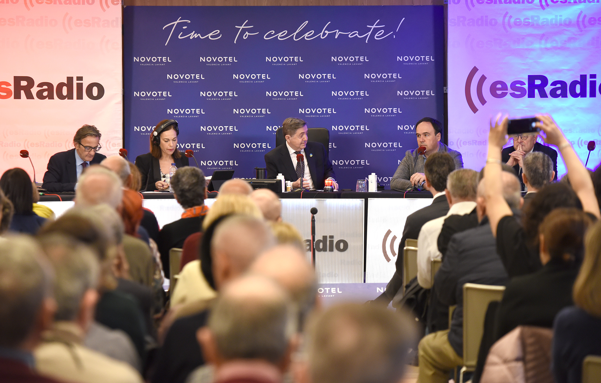 La tertulia política al completo con José Alejandro Vara, Rosana Laviada, Federico Jiménez Losantos y Francisco Marhuenda junto al presidente de la Generalidad valenciana Pérez-Llorca.