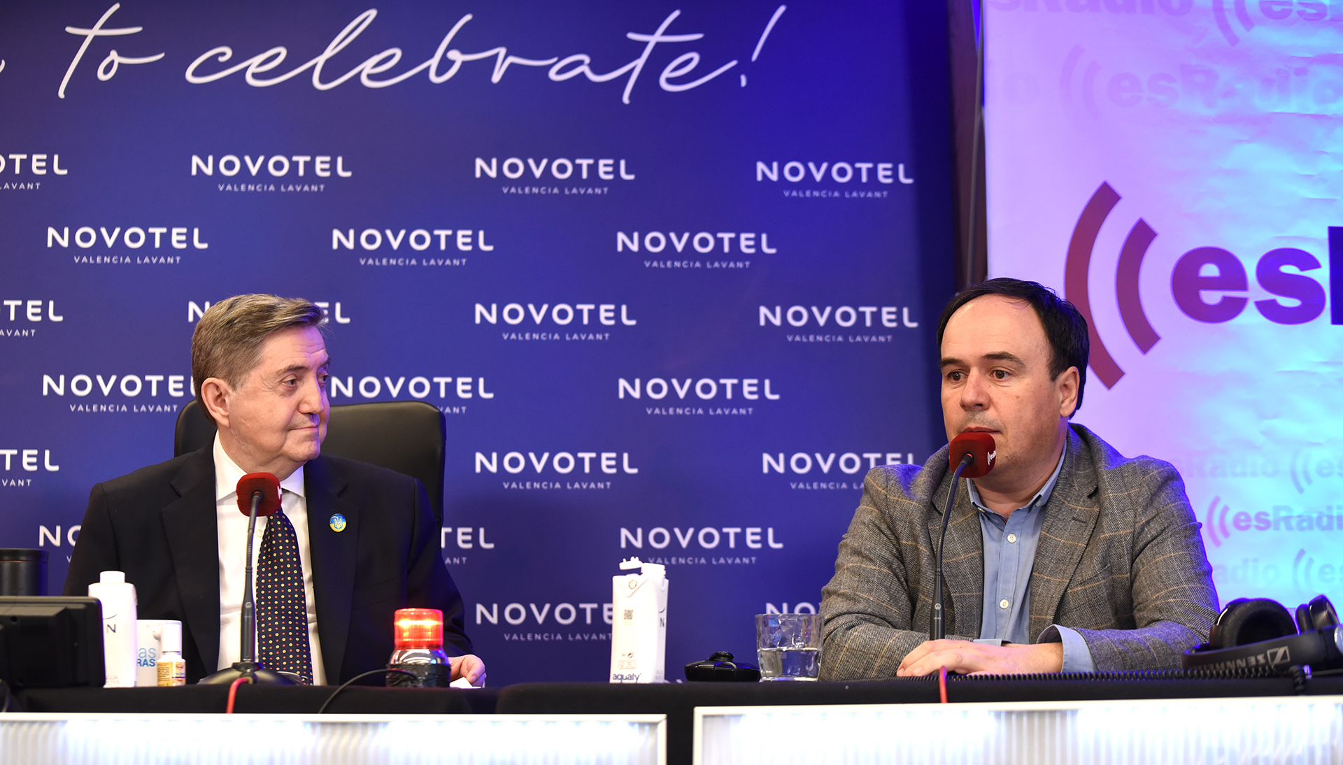Rodrigo Gomes, director del Hotel Novotel de Valencia junto Federico Jiménez Losantos en el programa especial celebrado en Valencia.