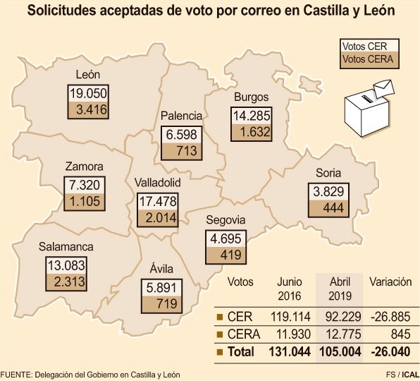 Más de 105.000 personas han solicitado el voto por correo en Castilla y Léon para elecciones generales del próximo domingo, una cifra inferior al voto emitido en la Comunidad en los anteriores comicios general del año 2016, cuando fueron 131.044 los castellanos y leoneses los que emitieron su voto por correo. Así lo cifró la nueva delegada del Gobierno, Mercedes Martín, quien atribuyó a la proximidad entre la Semana Santa y el 23 de abril este dato porque "confiamos en que los ciudadanos vayan a las urnas el domingo".