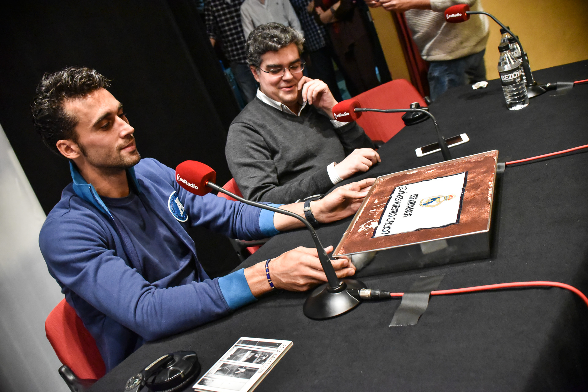 Un momento durante la entrevista a Álvaro Arbeloa, con Vicente Azpitarte de fondo.
