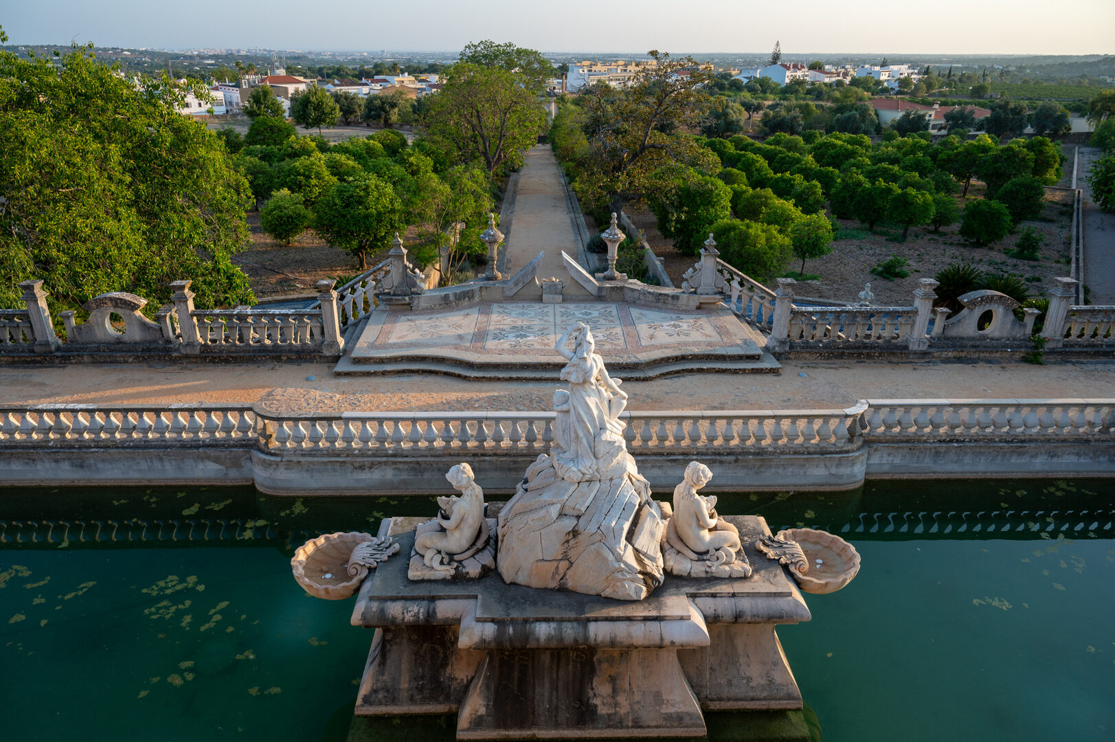 Los jardines están llenos de palmeras y naranjos, fuentes, esculturas y paneles de azulejos del siglo XIX que representan figuras mitológicas. Todos estos detalles recuerdan al Palacio de Queluz, que se inspiró en uno de los palacios más grandes del mundo, el Palacio de Versalles. | David Alonso Rincón