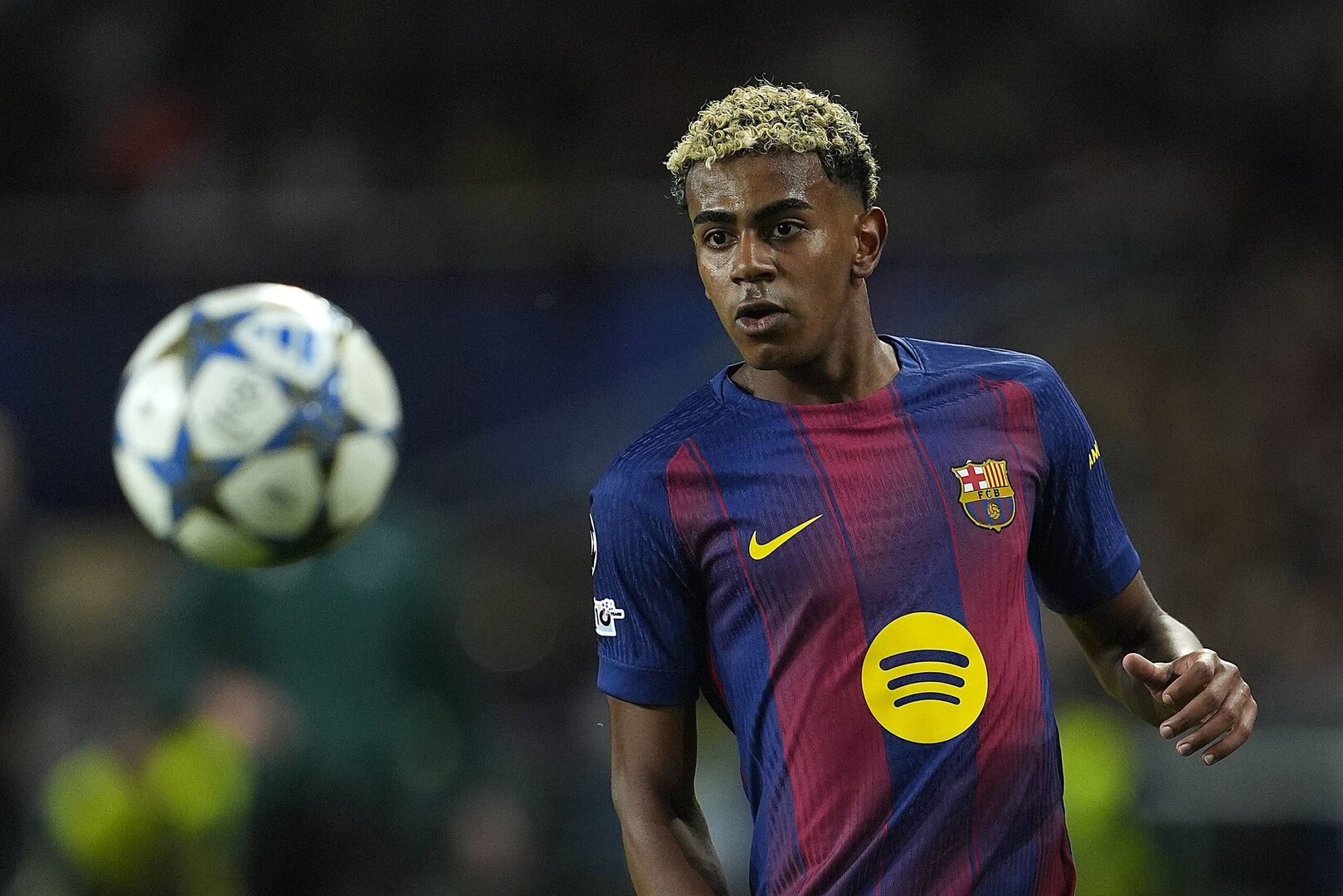 Lamine Yamal controla un balón durante un partido de Champions con el FC Barcelona. | Cordon Press