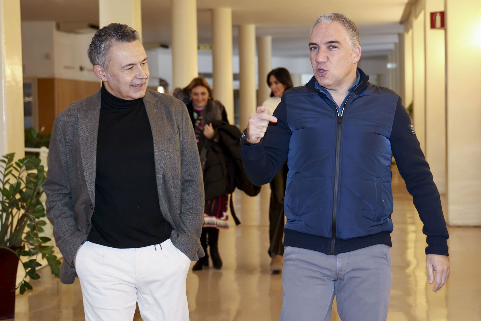 LOGROÑO 07/12/2024.- El alcalde de Logroño, Conrado Escobar (i) y Elías Bendodo (d), este sábado, en Logroño. | EFE