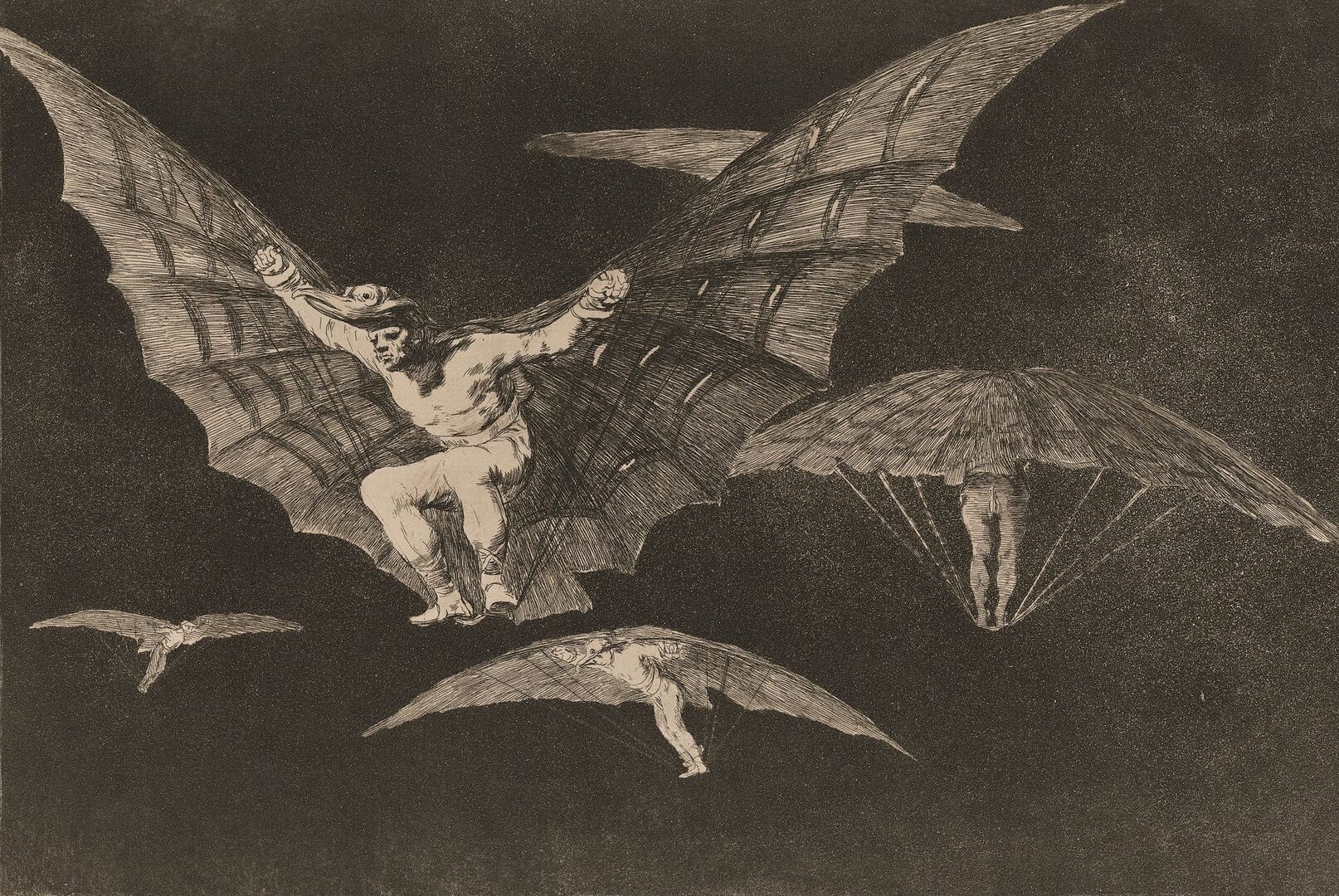 Disparates 13, Modo de volar. h. 1815-1824. Aguafuerte, aguatinta y punta seca. | Real Academia de Bellas Artes de San Fernando