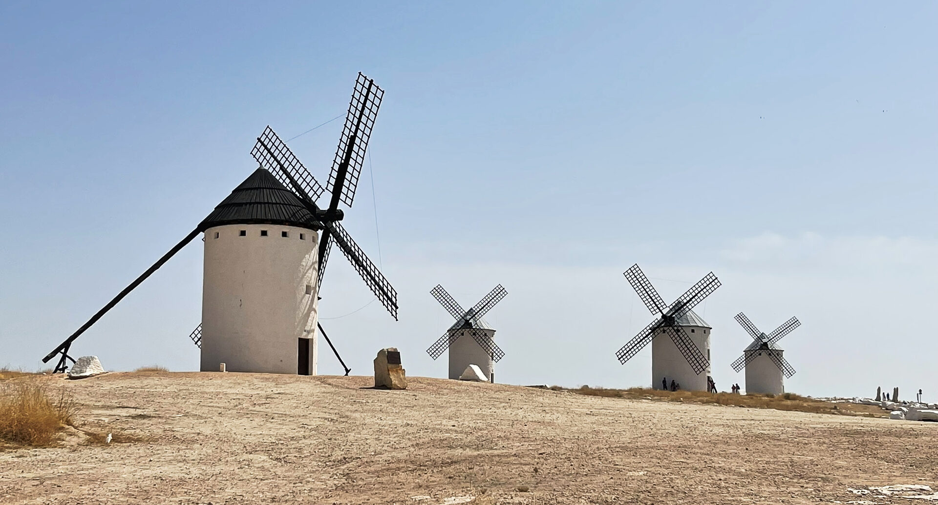 Vacances 22_000137Campo de Criptana, Ciudad Real, Castilla-La Mancha, España.Campo de Criptana es un municipio español perteneciente a la provincia de Ciudad Real, en la comunidad autónoma de Castilla-La Mancha. Está situado en la comarca natural de La Mancha,​ dentro de la subcomarca denominada Mancha Alta. Forma parte de la mancomunidad de Promancha.En la localidad se conserva una amplia muestra de los típicos molinos contra los que luchó Don Quijote en el capítulo VIII del libro universal de Cervantes, convertidos así en seña de identidad de La Mancha. De un total de diez molinos, tres datan del siglo XVI: Molino Burleta, Molino Infanto y Molino Sardinero.Integrado en la comarca de La Mancha de la provincia de Ciudad Real, en la subcomarca de Mancha Alta, se sitúa a 108 kilómetros de la capital provincial. El término municipal está atravesado por la carretera CM-420 (antigua N-420 entre los pK 293 y 306), además de por las carreteras CM-310, que se dirige hacia Quintanar de la Orden, CM-3105, que conecta con la autovía de los Viñedos, y por otras carreteras locales que permiten la comunicación con El Toboso y Arenales de San Gregorio.La mayor parte del término municipal es llano. La zona norte es la más elevada, alcanzándose la cota de 780 metros (en un cerro llamado Pozos). La parte próxima al casco urbano se denomina sierra de los Molinos, el paraje emblemático y mundialmente conocido donde se ubican los famosos 'gigantes' que inspiraron a Cervantes para narrar la más famosa aventura de Don Quijote. El casco urbano se encuentra a pie de ladera, extendiéndose de norte a sur desde el barrio del Albaicín contiguo a la sierra de los Molinos hasta la zona sur, cruzada por la vía del tren, residencial e industrial. Se alza a 707 metros sobre el nivel del mar. El término municipal es cruzado al sur por el río Záncara.4​ La altitud oscila entre los 780 metros y los 635 metros a orillas del río Záncara. Campo de Criptana is a Spanish municipality belonging to the province of Ciudad Real, in the autonomous community of Castilla-La Mancha. It is located in the natural region of La Mancha, within the subregion called Mancha Alta. It is part of the Promancha community.In the town there is a large sample of the typical windmills against which Don Quixote fought in chapter VIII of Cervantes' universal book, thus becoming a hallmark of La Mancha. Of a total of ten mills, three date back to the 16th century: Molino Burleta, Molino Infanto and Molino Sardinero.Integrated in the La Mancha region of the province of Ciudad Real, in the Mancha Alta subregion, it is located 108 kilometers from the provincial capital. The municipal area is crossed by the CM-420 highway (former N-420 between points 293 and 306), as well as by the CM-310 highways, which heads towards Quintanar de la Orden, CM-3105, which connects with the Los Viñedos highway, and other local roads that allow communication with El Toboso and Arenales de San Gregorio.Most of the municipal area is flat. The northern area is the highest, reaching a height of 780 meters (on a hill called Pozos). The part close to the town center is called Sierra de los Molinos, the emblematic and world-famous place where the famous 'giants' that inspired Cervantes to narrate the most famous adventure of Don Quixote are located. The urban area is located at the foot of the slope, extending from north to south from the Albaicín neighborhood adjacent to the Sierra de los Molinos to the southern area, crossed by the train track, residential and industrial. It stands 707 meters above sea level. The municipal area is crossed to the south by the Záncara River.4​ The altitude ranges between 780 meters and 635 meters on the banks of the Záncara River. | Flickr/CC/Joanbrebo