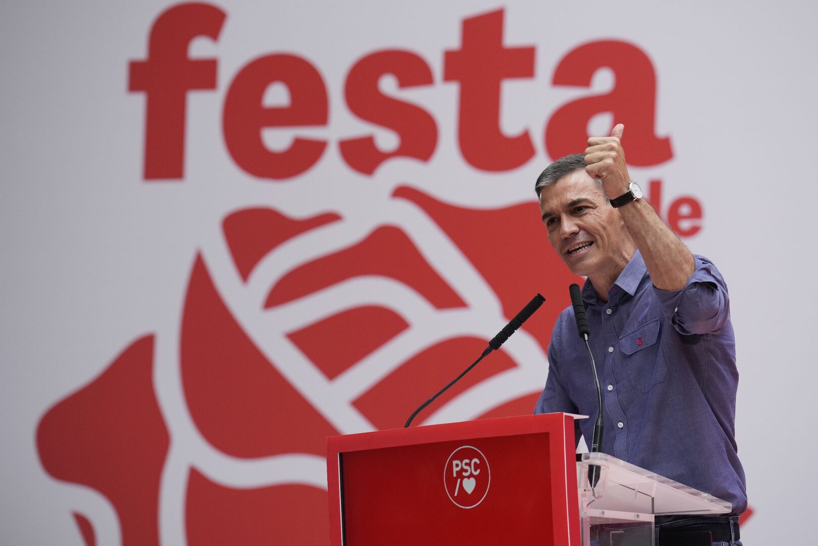 El presidente del Gobierno, Pedro Sánchez participa en la tradicional Fiesta de la Rosa del PSC en Gavá, Bacelona. | EFE