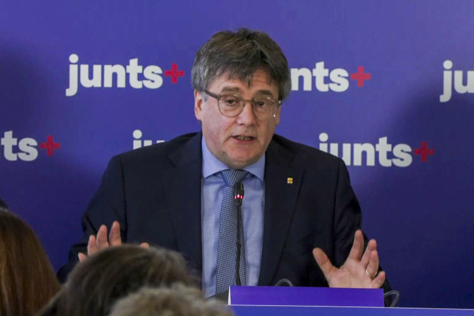 Puigdemont interviene en las jornadas de trabajo de JxCat en Waterloo. | EFE/ Pablo Garrigós