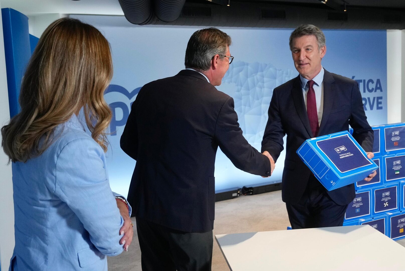 Alberto Núñez Feijóo presenta 94.501 avales para revalidar mandato, el doble que hace tres años. | PP
