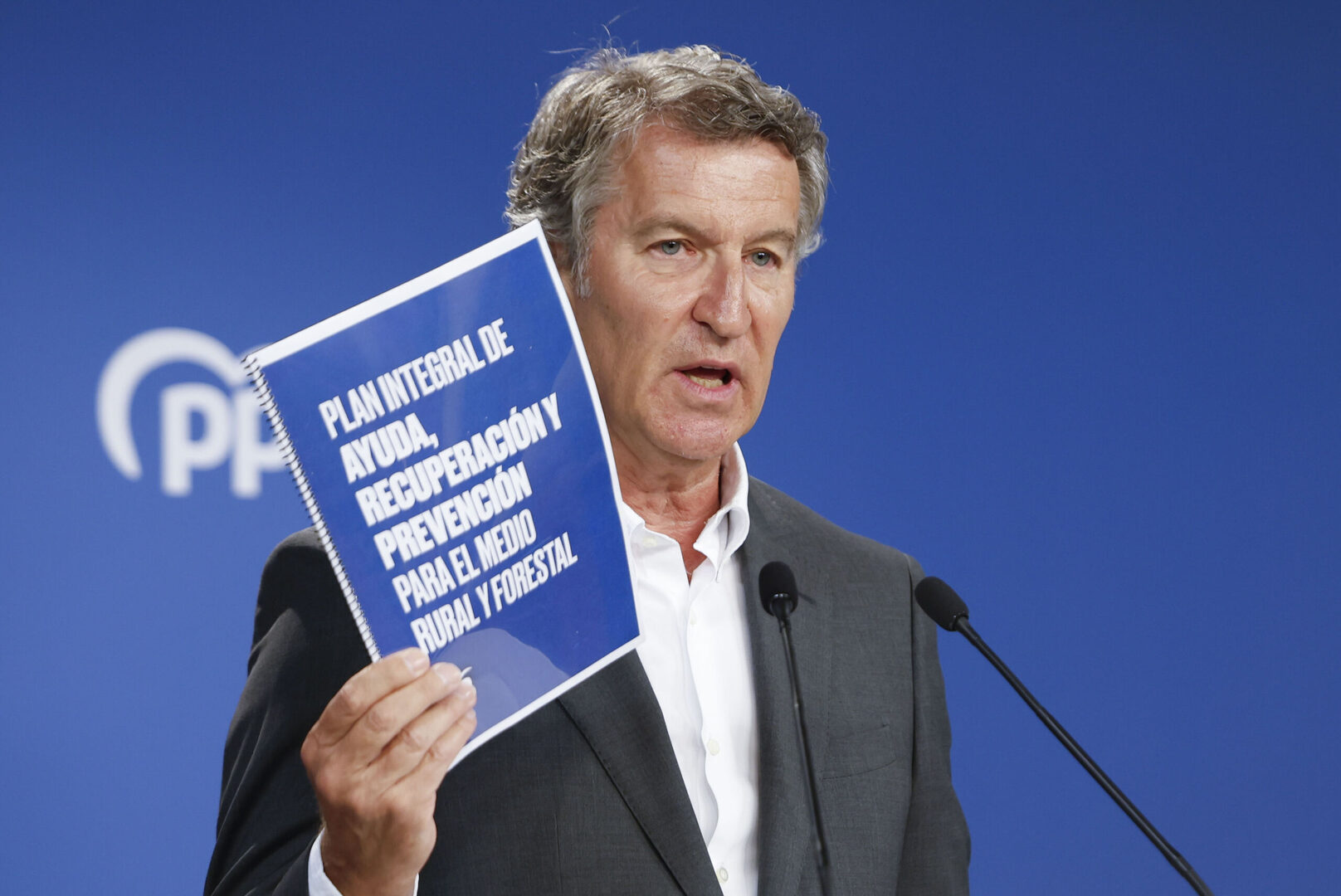 El líder del PP, Alberto Núñez Feijóo comparece tras la reunión del Comité de Dirección del PP celebrada este lunes en la sede de la calle Génova. | EFE