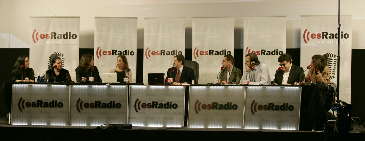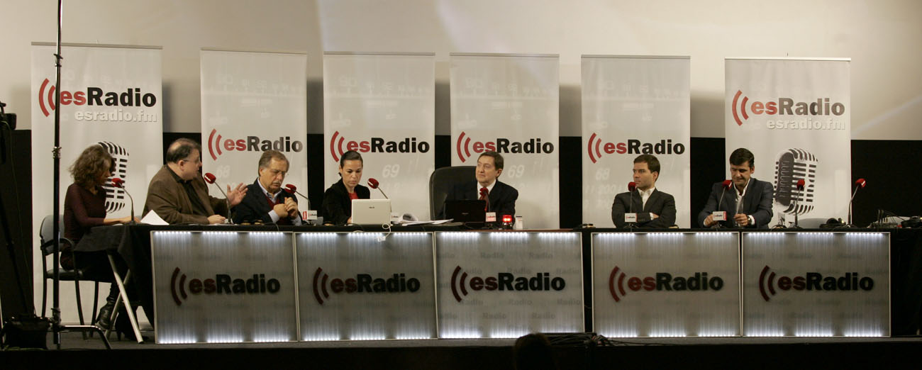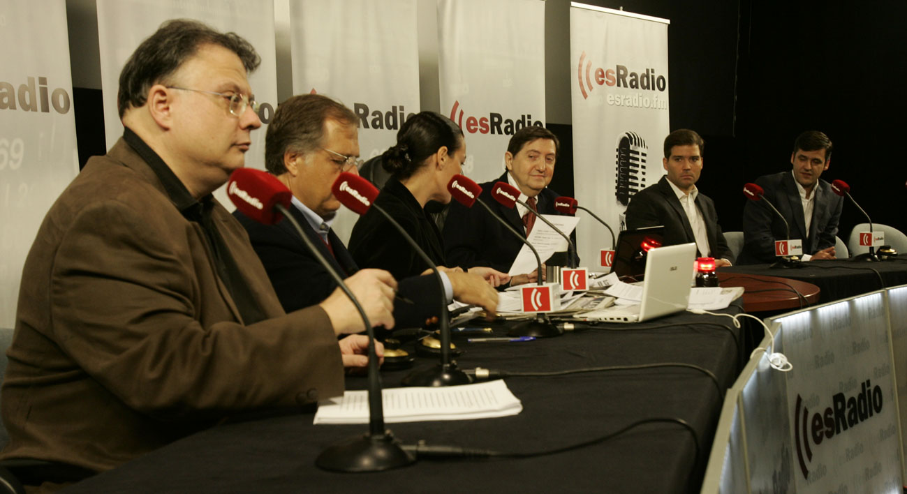 De izquierda a derecha, Cesar Vidal, Luis Herrero, Rosana Laviada, Federico Jiménez Losantos, Dieter Brandau y Javier Somalo.