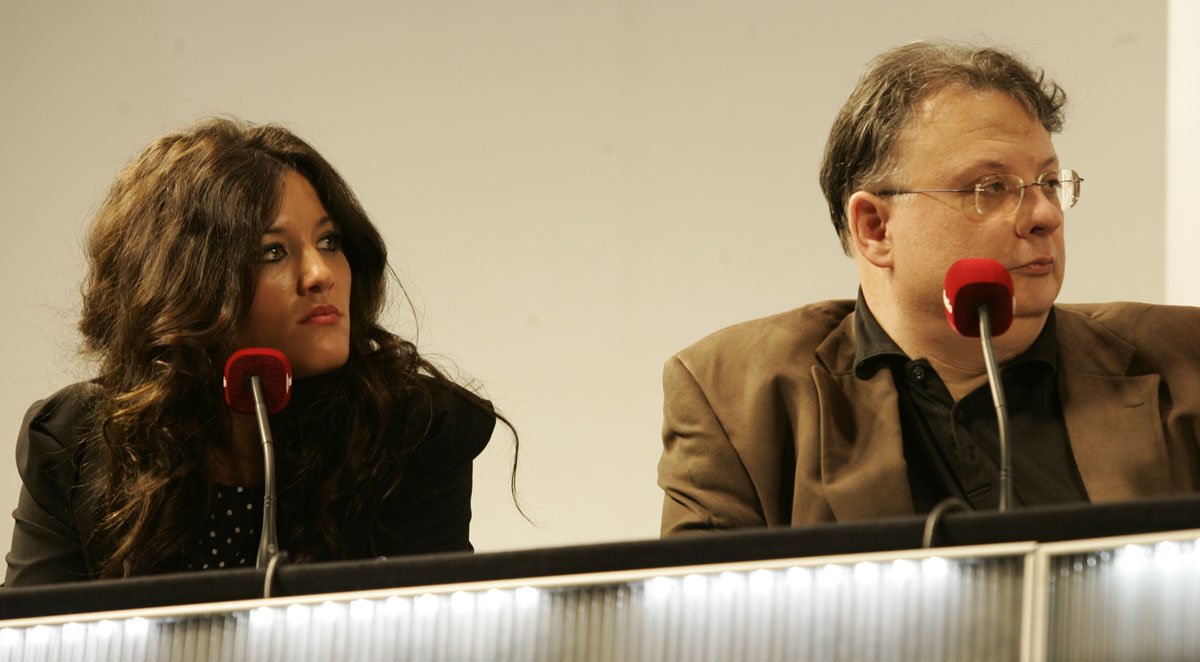 César Vidal junto a Sara Sanz, redactora del programa, durante la tertulia política.