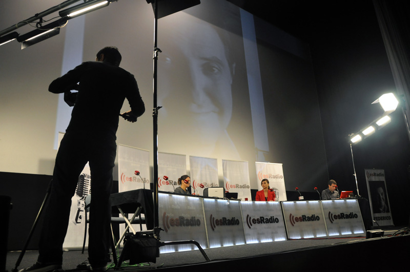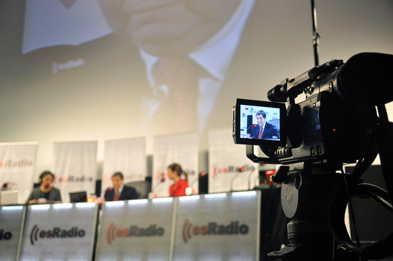 Las cámaras graban Es la mañana para la audiencia del cine Palafox y para la de Libertad Digital TV.