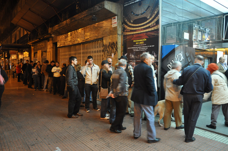 Los primeros asistentes hacían cola frente al cine Palafox desde primerísimas horas de la mañana.