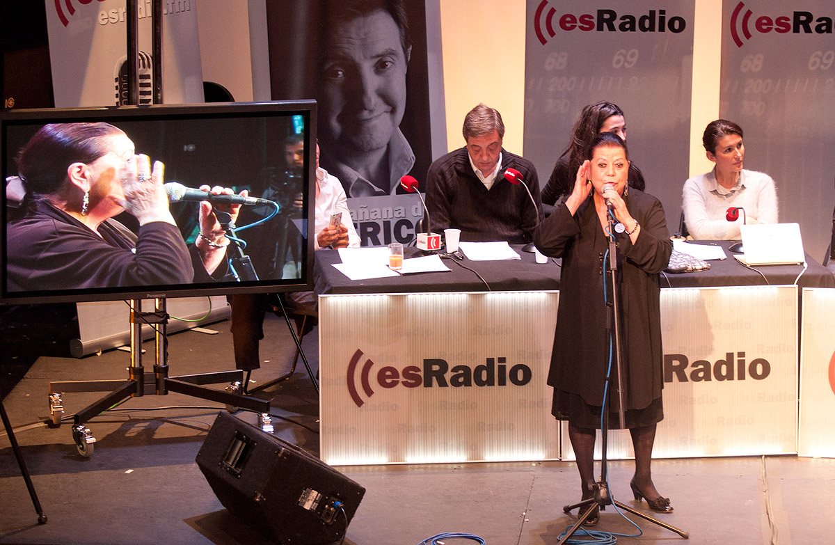 El paso de Es la mañana de Federico por el Teatro Lara ha supuesto también toda una sesión artística con las canciones del Grupo Risa interpretadas por David Miner, el Suspiros de España de Carmen Jara y, en esta ocasión, un regalo muy especial de Nati Mistral.