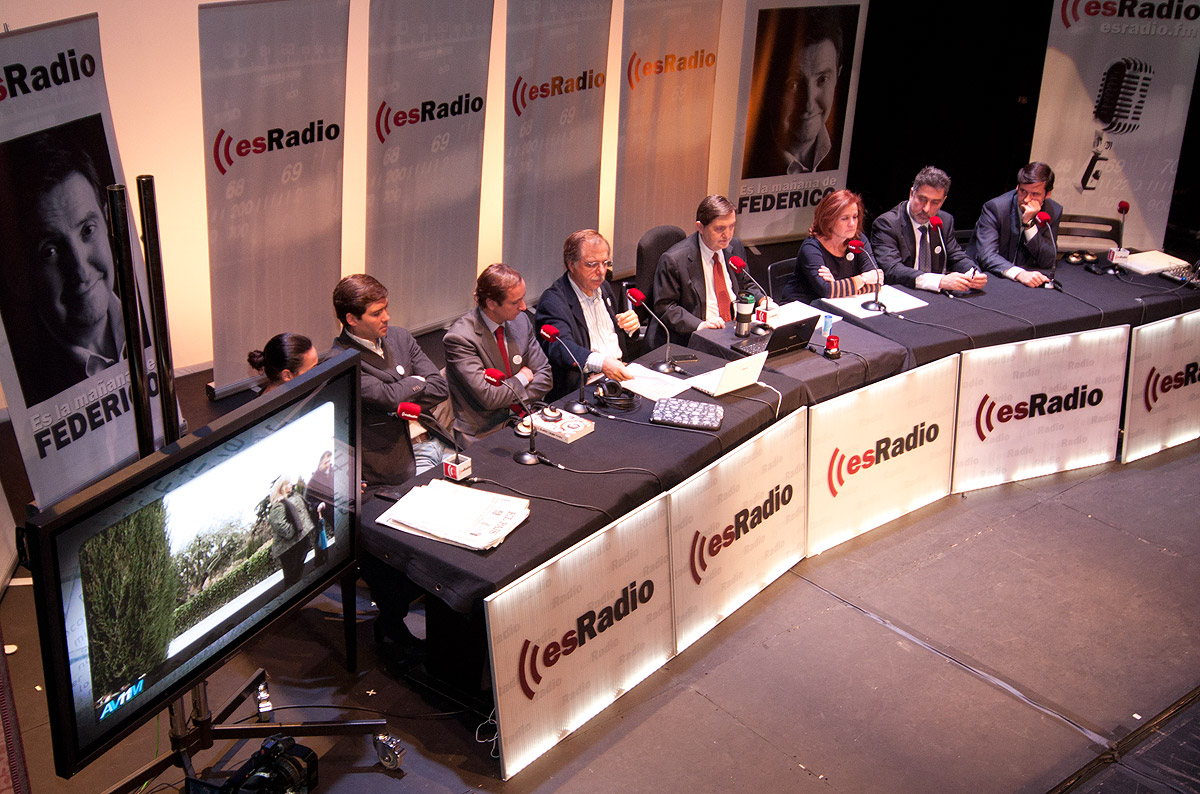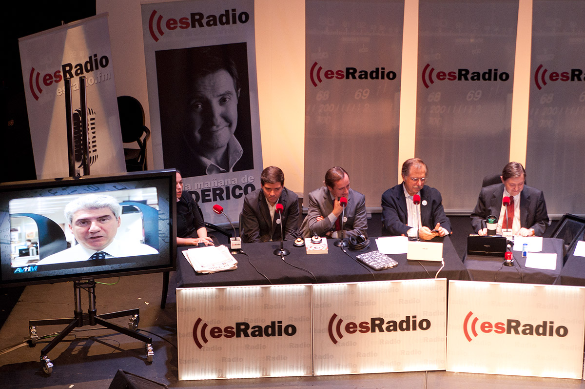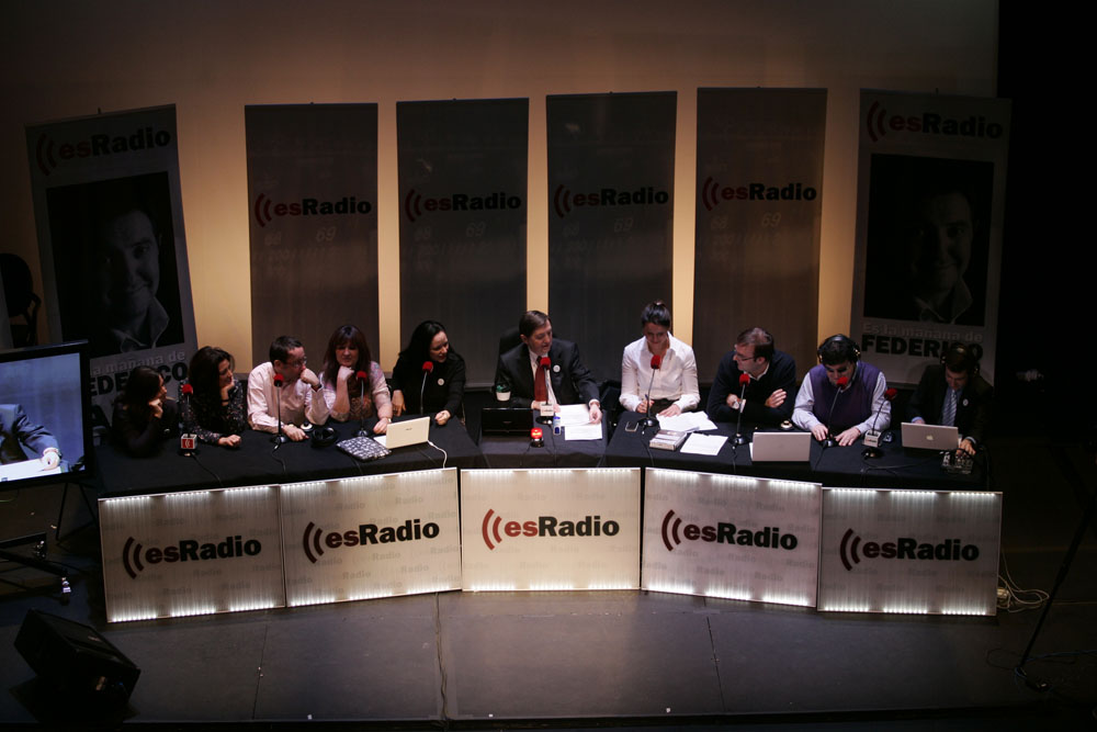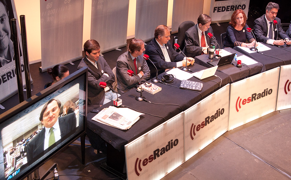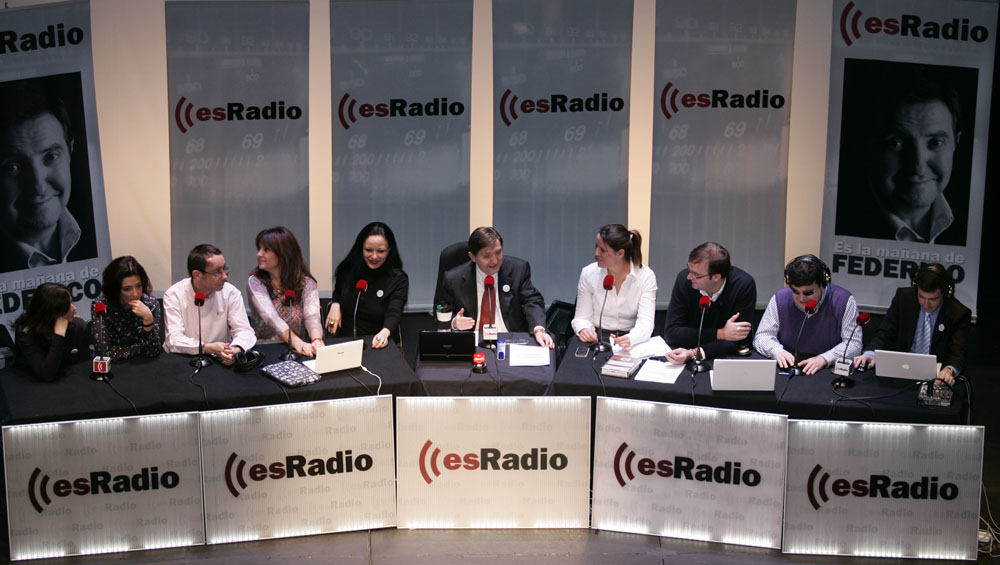 La mesa de Es la mañana de Federico, con el logotipo de esRadio.