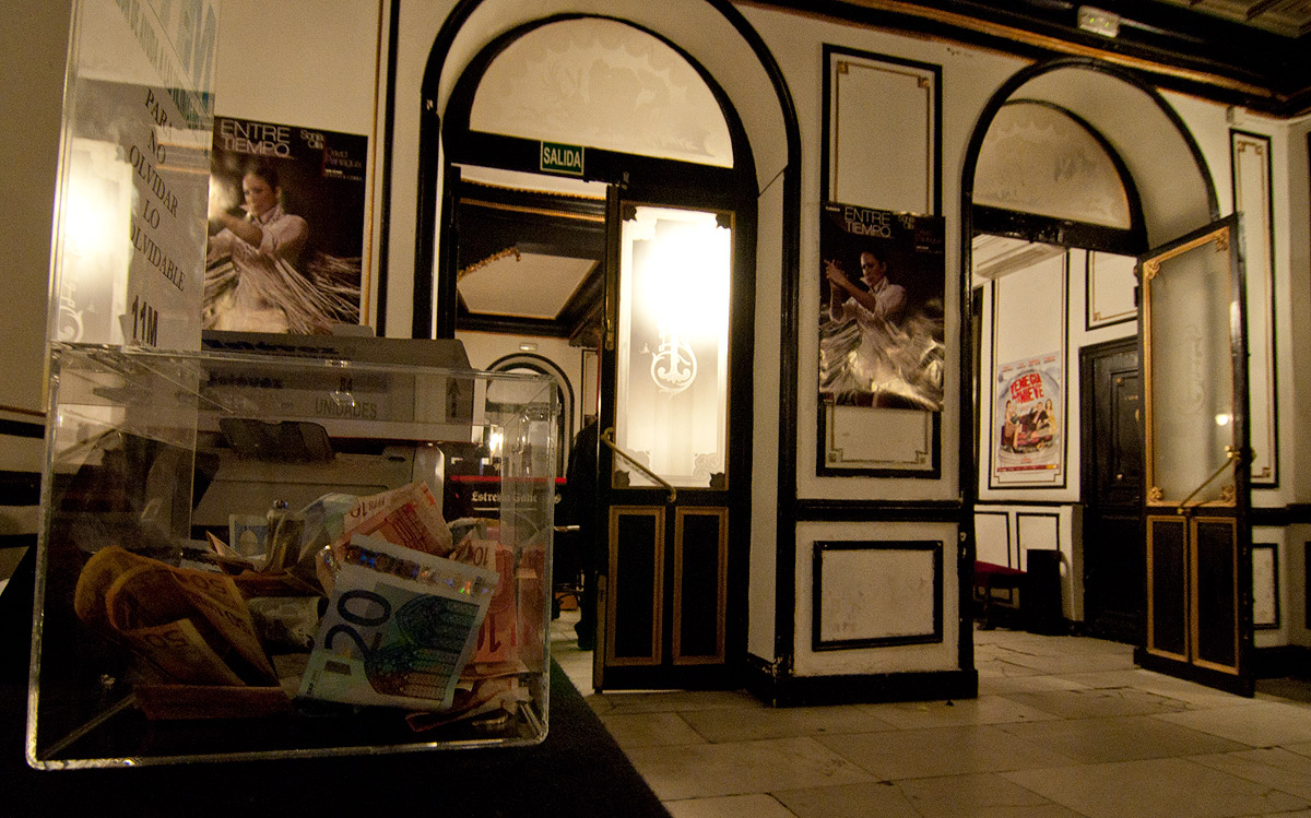 Uno de los primeros oyentes en donar a la Asociación de ayuda a las Víctimas del 11-M en el Teatro Lara, a primera hora de la mañana .